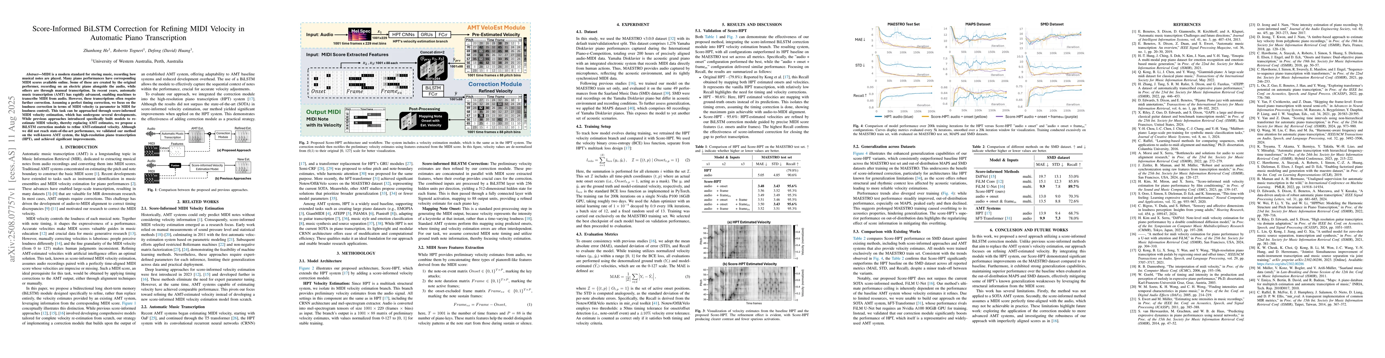 This work differs from previous score-informed methods by focusing on refining AMT-estimated velocity instead of replacing it, and by demonstrating strong generalization capabilities across various datasets.