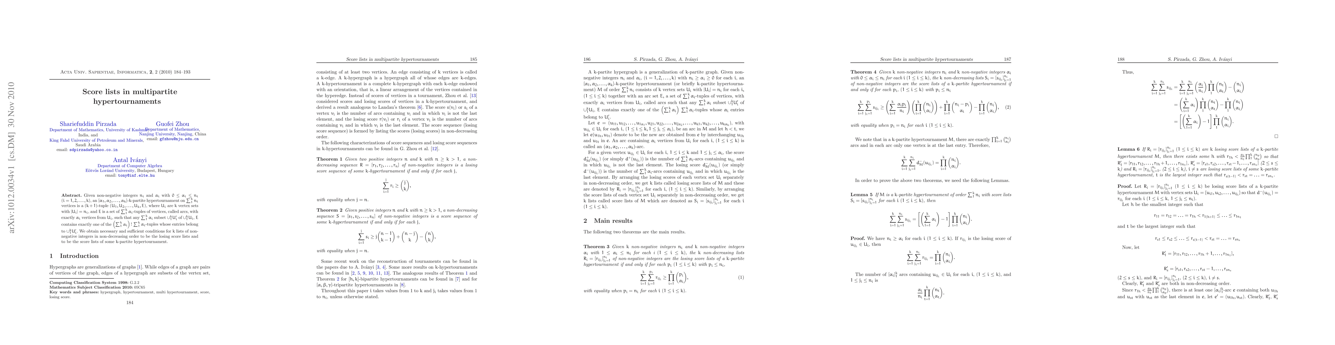 Researchers study k-partite hypertournaments with score lists, finding necessary and sufficient conditions for specific list configurations to be losing scores or winning scores in a tournament.
