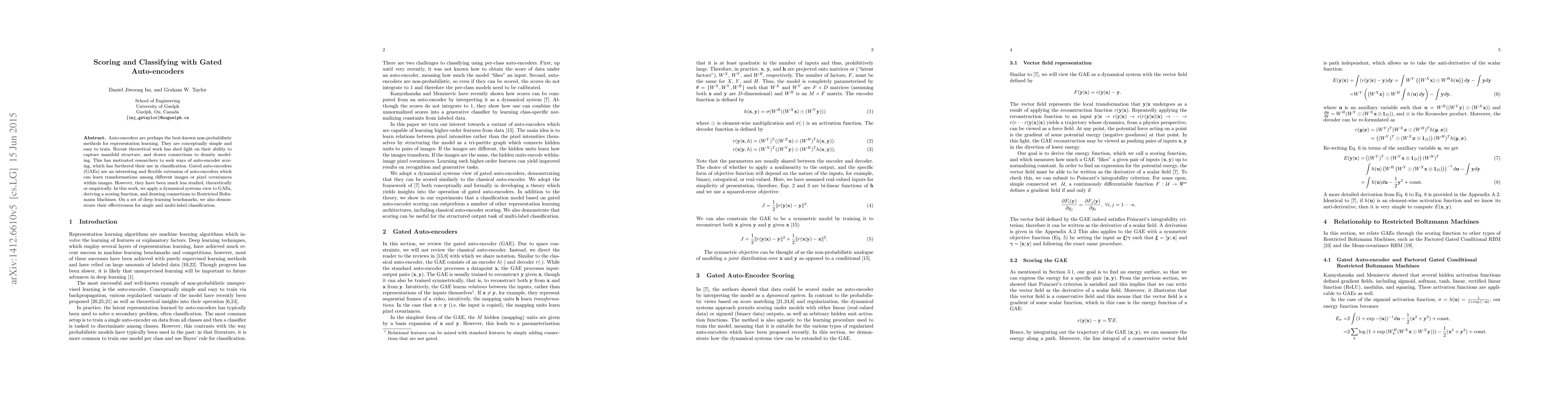 This paper develops a scoring function for gated auto-encoders (GAEs) based on dynamical systems theory and shows their effectiveness in classification tasks on deep learning benchmarks, highlighting GAEs' potential beyond traditional auto-encoders.