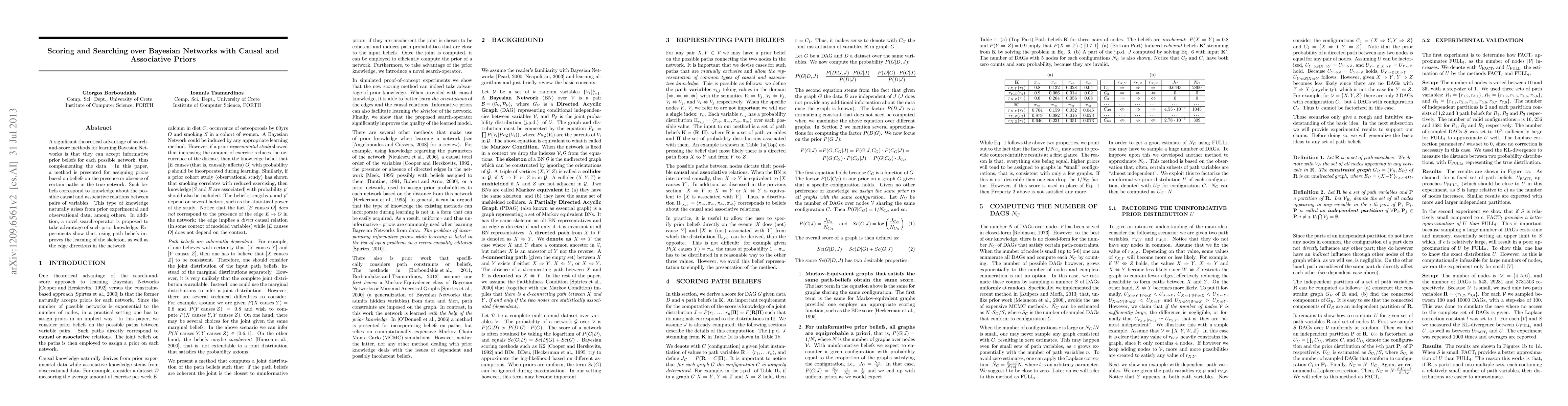 A significant theoretical advantage of search-and-score methods for learning Bayesian Networks is that they can accept informative prior beliefs for each possible network, thus complementing the data. In this paper, a method is presented for assigning priors based on beliefs on the presence or absence of certain paths in the true network. Such beliefs correspond to knowledge about the possible causal and associative relations between pairs of variables. This type of knowledge naturally arises from prior experimental and observational data, among others. In addition, a novel search-operator is proposed to take advantage of such prior knowledge. Experiments show that, using path beliefs improves the learning of the skeleton, as well as the edge directions in the network.
