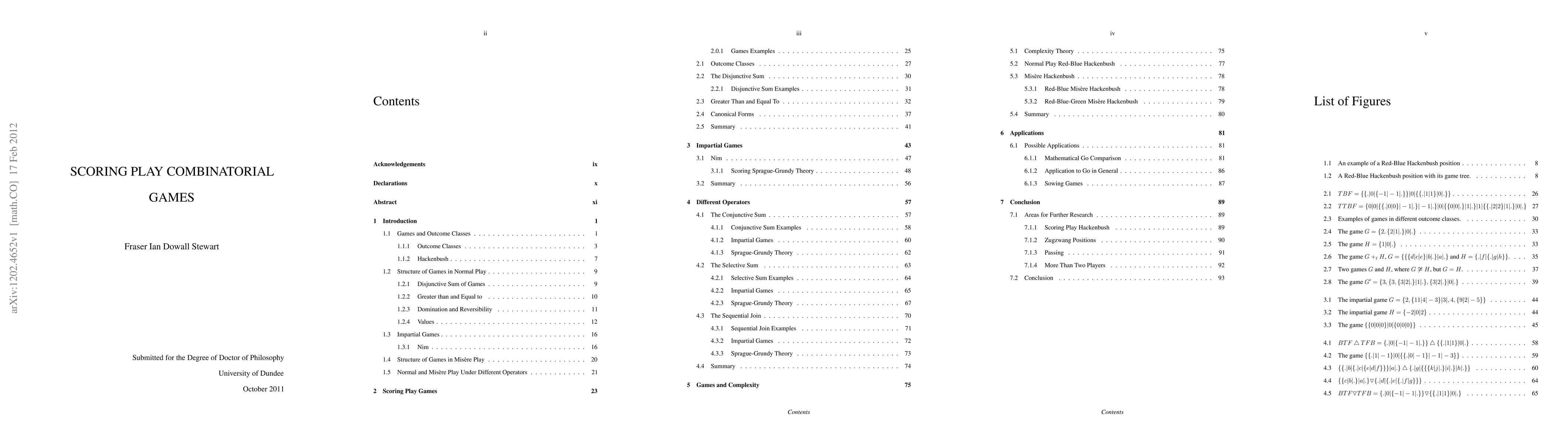 This thesis explores scoring play combinatorial games, focusing on their structure under different operators and introducing a computable function for solving a wide range of octal games. It also applies the theory to the game of Go, enhancing understanding of its strategic elements.
