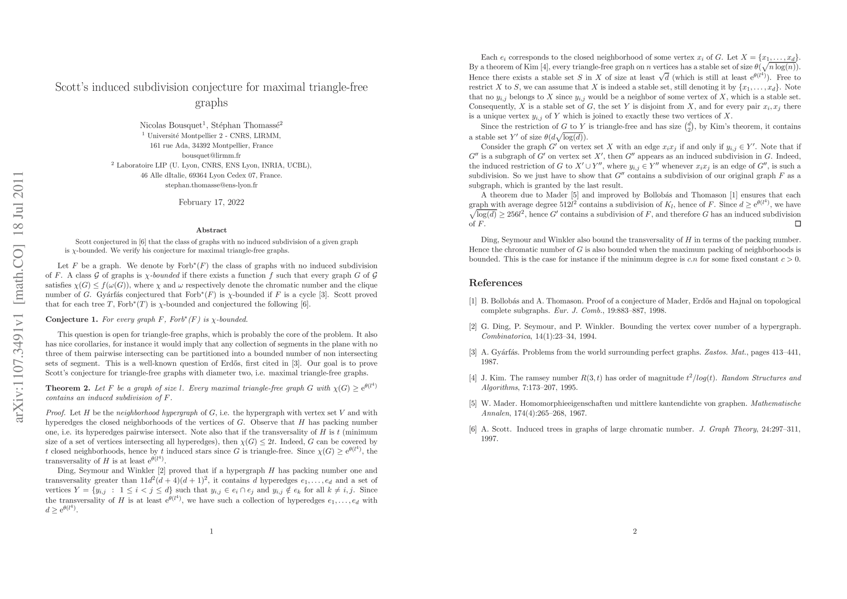 Nicolas Trotignon, Maria Chudnovsky, Sophie Spirkl et al.