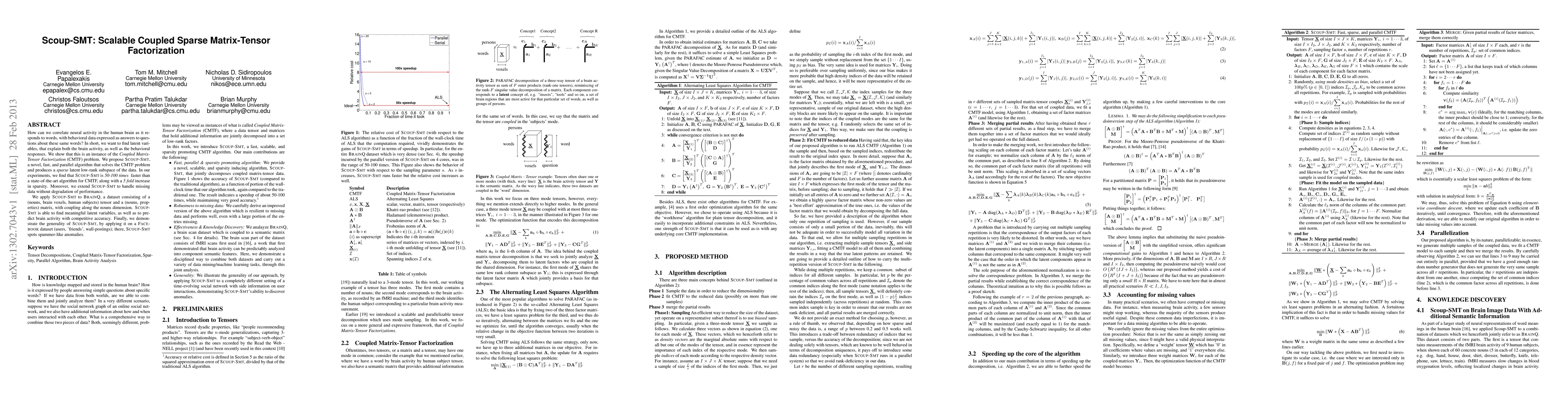 Scoup-SMT is a novel algorithm for solving the Coupled Matrix-Tensor Factorization problem, which correlates neural brain activity with behavioral data. It is significantly faster and more sparse than existing methods, and effectively identifies latent variables and predicts brain responses.