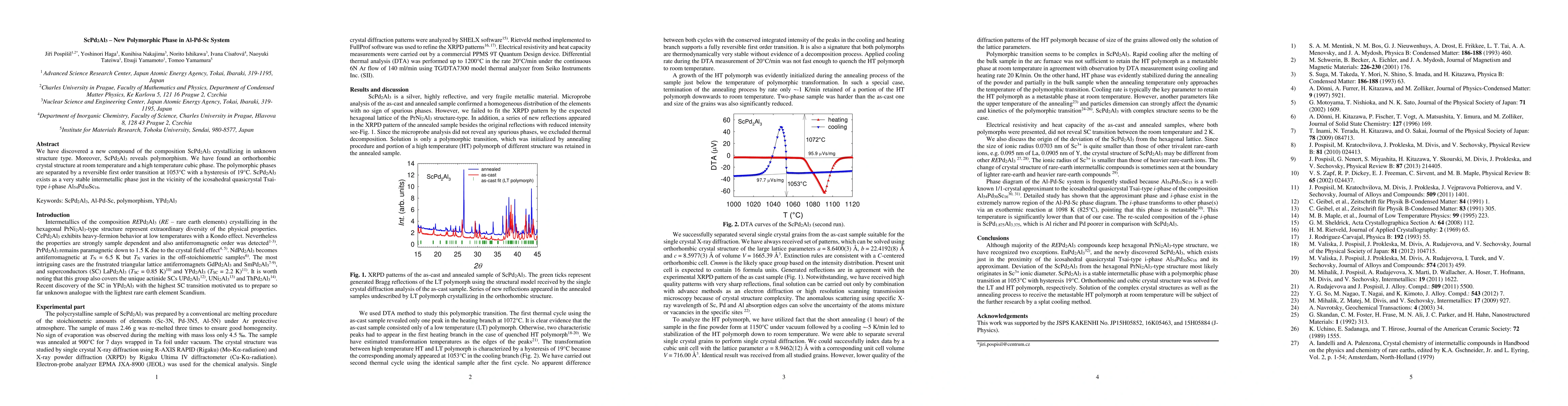 Summary: Researchers identified ScPd2Al3, a new intermetallic compound in the Al-Pd-Sc system, which exhibits polymorphism with an orthorhombic structure at room temperature transitioning to a cubic phase at 1053°C, accompanied by a reversible first-order transition.