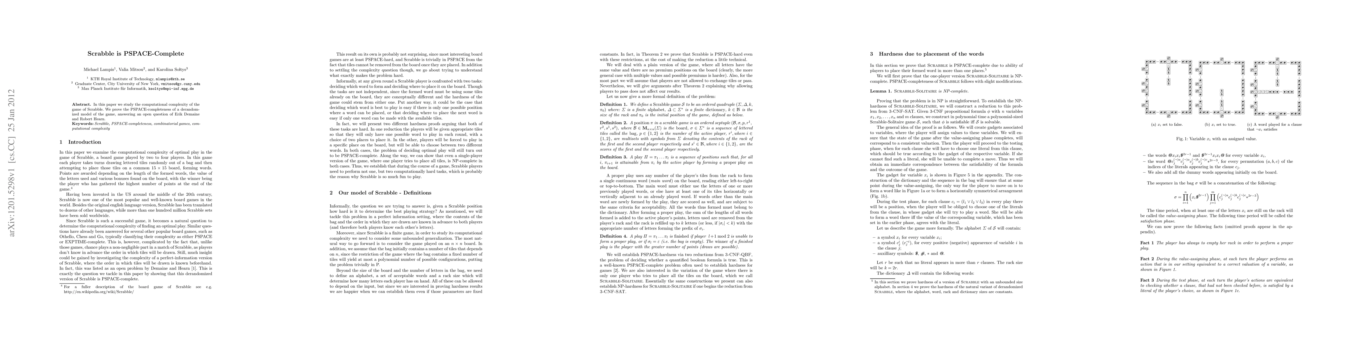 In this paper we study the computational complexity of the game of Scrabble. We prove the PSPACE-completeness of a derandomized model of the game, answering an open question of Erik Demaine and Robert Hearn.
