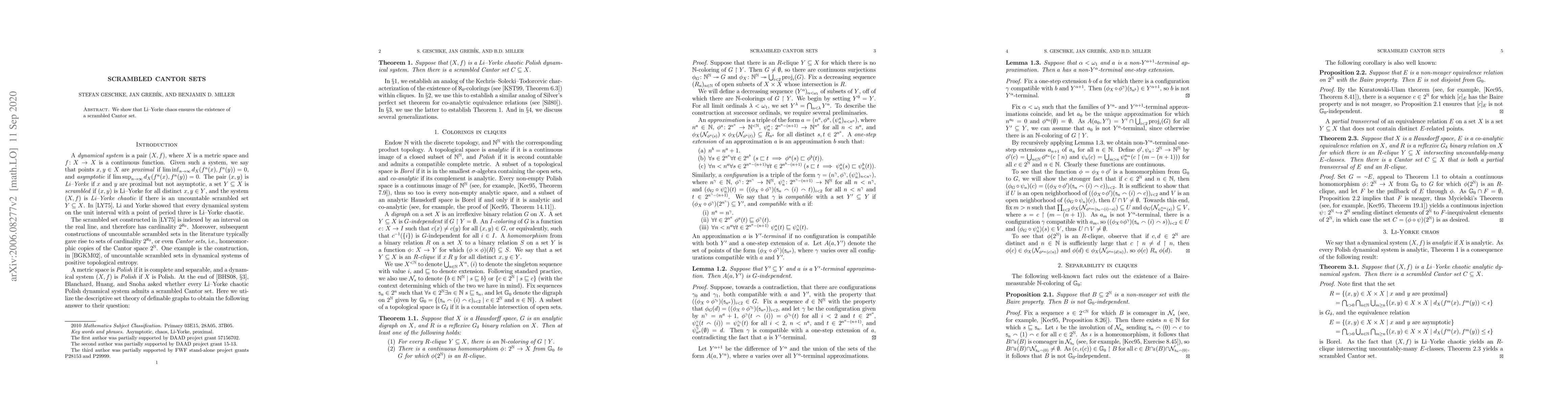 Summary: This paper demonstrates that the presence of Li-Yorke chaos guarantees the existence of a scrambled Cantor set, linking chaotic behavior to specific fractal structures.