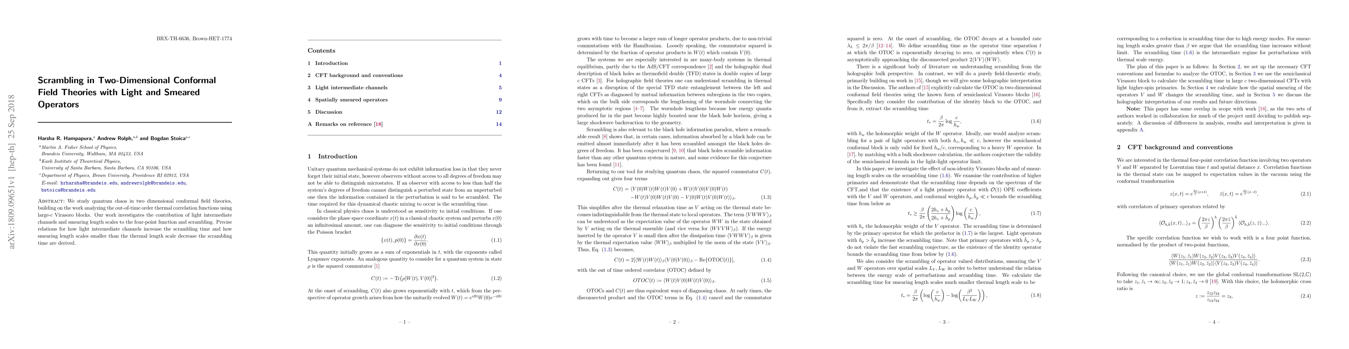 We study quantum chaos in two dimensional conformal field theories, building on the work analyzing the out-of-time order thermal correlation functions using large-c Virasoro blocks. Our work investigates the contribution of light intermediate channels and smearing length scales to the four-point function and scrambling. Precise relations for how light intermediate channels increase the scrambling time and how smearing length scales smaller than the thermal length scale decrease the scrambling time are derived.