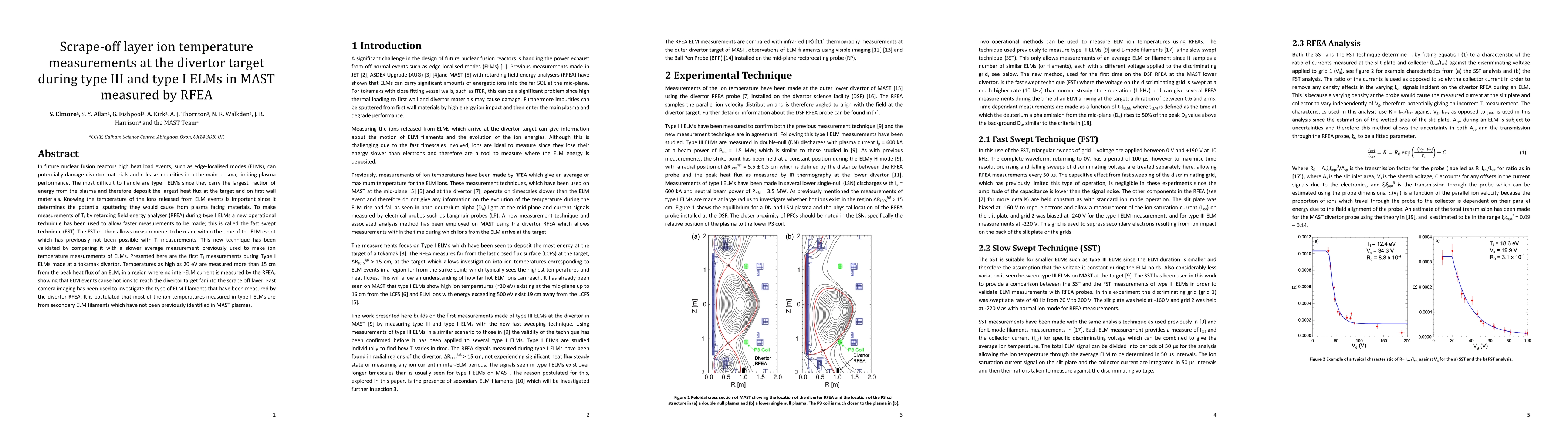 In future nuclear fusion reactors high heat load events, such as edge-localised modes (ELMs), can potentially damage divertor materials and release impurities into the main plasma, limiting plasma performance. The most difficult to handle are type I ELMs since they carry the largest fraction of energy from the plasma and therefore deposit the largest heat flux at the target and on first wall materials. Knowing the temperature of the ions released from ELM events is important since it determines the potential sputtering they would cause from plasma facing materials. To make measurements of Ti by retarding field energy analyser (RFEA) during type I ELMs a new operational technique has been used to allow faster measurements to be made; this is called the fast swept technique (FST).