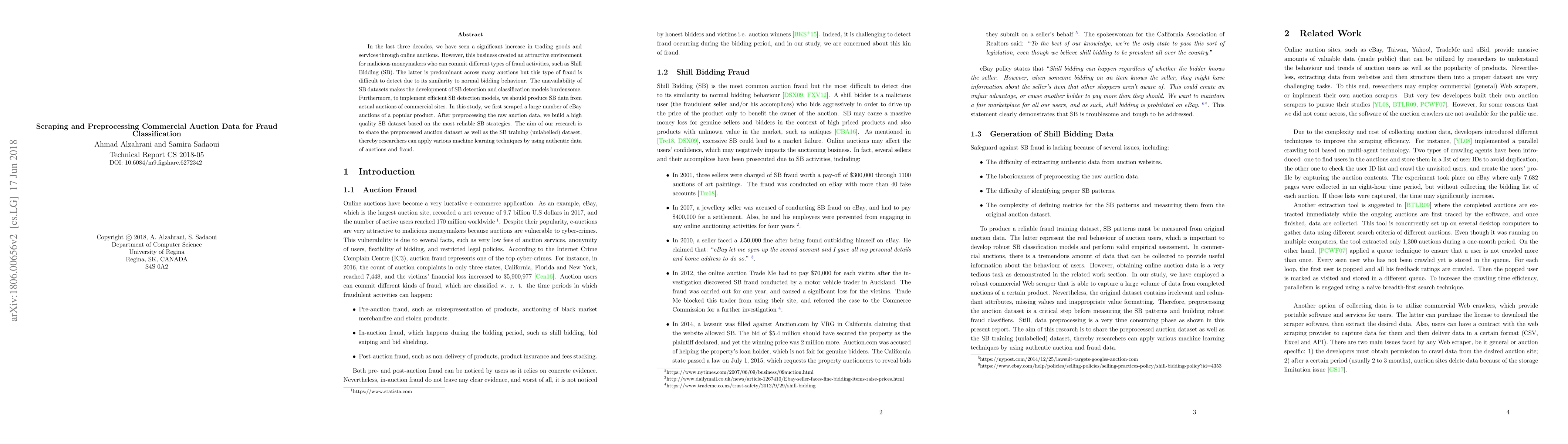 Researchers created a large eBay auction dataset to detect Shill Bidding (SB) fraud through machine learning models, aiming to improve detection efficiency.