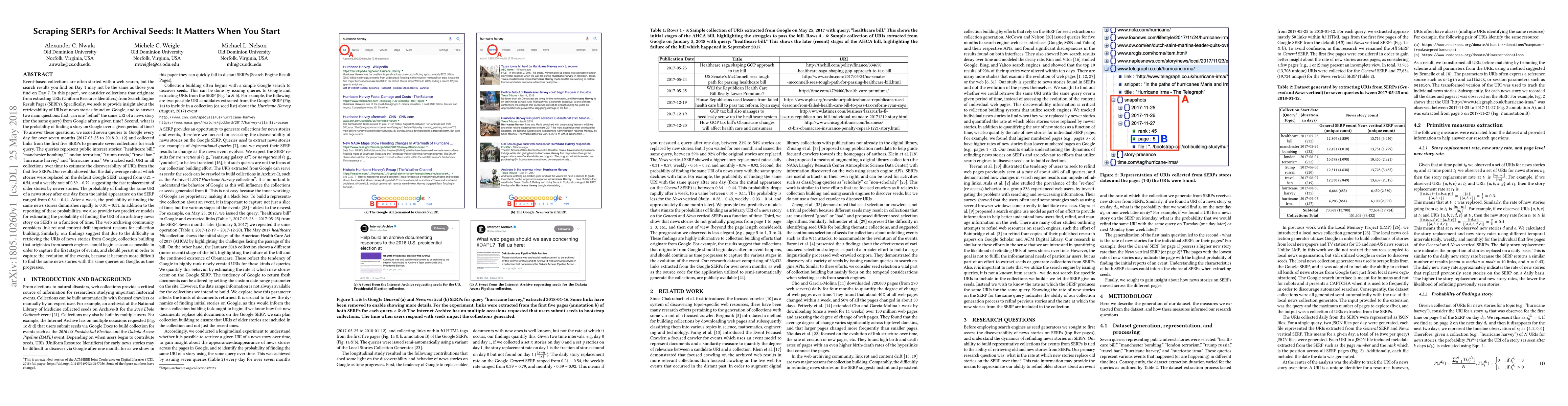 Event-based collections are often started with a web search, but the search results you find on Day 1 may not be the same as those you find on Day 7. In this paper, we consider collections that originate from extracting URIs (Uniform Resource Identifiers) from Search Engine Result Pages (SERPs). Specifically, we seek to provide insight about the retrievability of URIs of news stories found on Google, and to answer two main questions: first, can one "refind" the same URI of a news story (for the same query) from Google after a given time? Second, what is the probability of finding a story on Google over a given period of time? To answer these questions, we issued seven queries to Google every day for over seven months (2017-05-25 to 2018-01-12) and collected links from the first five SERPs to generate seven collections for each query. The queries represent public interest stories: "healthcare bill," "manchester bombing," "london terrorism," "trump russia," "travel ban," "hurricane harvey," and "hurricane irma." We tracked each URI in all collections over time to estimate the discoverability of URIs from the first five SERPs. Our results showed that the daily average rate at which stories were replaced on the default Google SERP ranged from 0.21 -0.54, and a weekly rate of 0.39 - 0.79, suggesting the fast replacement of older stories by newer stories. The probability of finding the same URI of a news story after one day from the initial appearance on the SERP ranged from 0.34 - 0.44. After a week, the probability of finding the same news stories diminishes rapidly to 0.01 - 0.11. Our findings suggest that due to the difficulty in retrieving the URIs of news stories from Google, collection building that originates from search engines should begin as soon as possible in order to capture the first stages of events, and should persist in order to capture the evolution of the events...