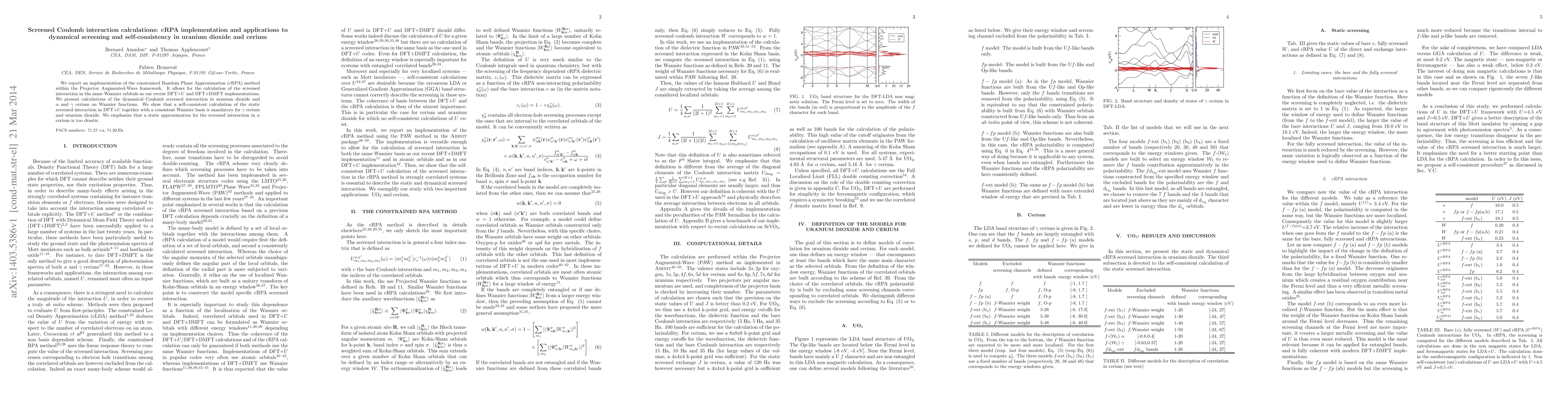 This paper implements the constrained random phase approximation (cRPA) method within the projector augmented-wave framework to calculate the screened Coulomb interaction in uranium dioxide and cerium. The study highlights the necessity of self-consistent calculations for accurate results in gamma cerium and uranium dioxide, while noting that a static approximation is insufficient for alpha cerium.