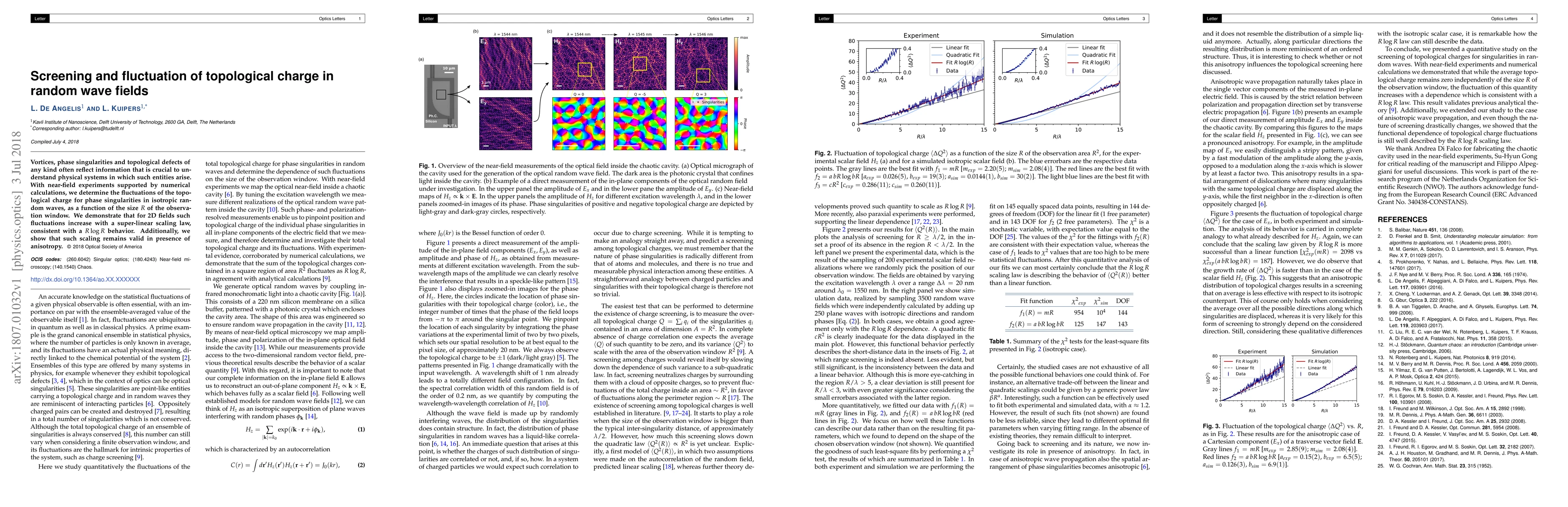 Vortices, phase singularities, and topological defects of any kind often reflect information that is crucial for understanding physical systems in which such entities arise. With near-field experiments supported by numerical calculations, we determine the fluctuations of the topological charge for phase singularities in isotropic random waves as a function of the size R of the observation window. We demonstrate that for two-dimensional fields such fluctuations increase with a superlinear scaling law, consistent with a R log R behavior. Additionally, we show that such scaling remains valid in the presence of anisotropy.