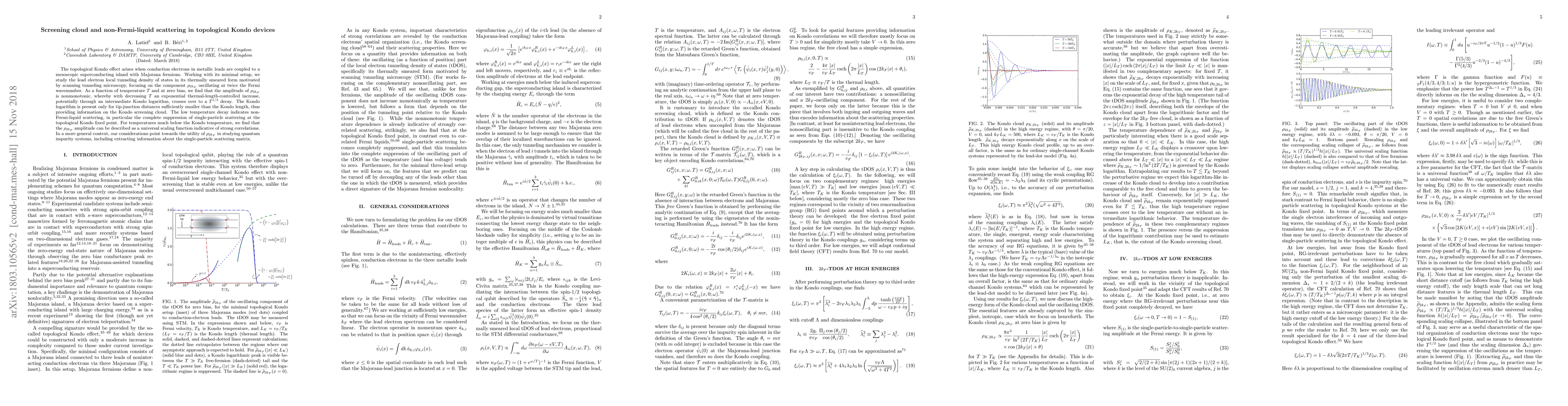 The topological Kondo effect arises when conduction electrons in metallic leads are coupled to a mesoscopic superconducting island with Majorana fermions. Working with its minimal setup, we study the lead electron local tunneling density of states in its thermally smeared form motivated by scanning tunneling microscopy, focusing on the component $\rho_{2 k_F}$ oscillating at twice the Fermi wavenumber. As a function of temperature $T$ and at zero bias, we find that the amplitude of $\rho_{2 k_F}$ is nonmonotonic, whereby with decreasing $T$ an exponential thermal-length-controlled increase, potentially through an intermediate Kondo logarithm, crosses over to a $T^{1/3}$ decay. The Kondo logarithm is present only for tip-junction distances sufficiently smaller than the Kondo length, thus providing information on the Kondo screening cloud. The low temperature decay indicates non-Fermi-liquid scattering, in particular the complete suppression of single-particle scattering at the topological Kondo fixed point. For temperatures much below the Kondo temperature, we find that the $\rho_{2 k_F}$ amplitude can be described as a universal scaling function indicative of strong correlations. In a more general context, our considerations point towards the utility of $\rho_{2 k_F}$ in studying quantum impurity systems, including extracting information about the single-particle scattering matrix.