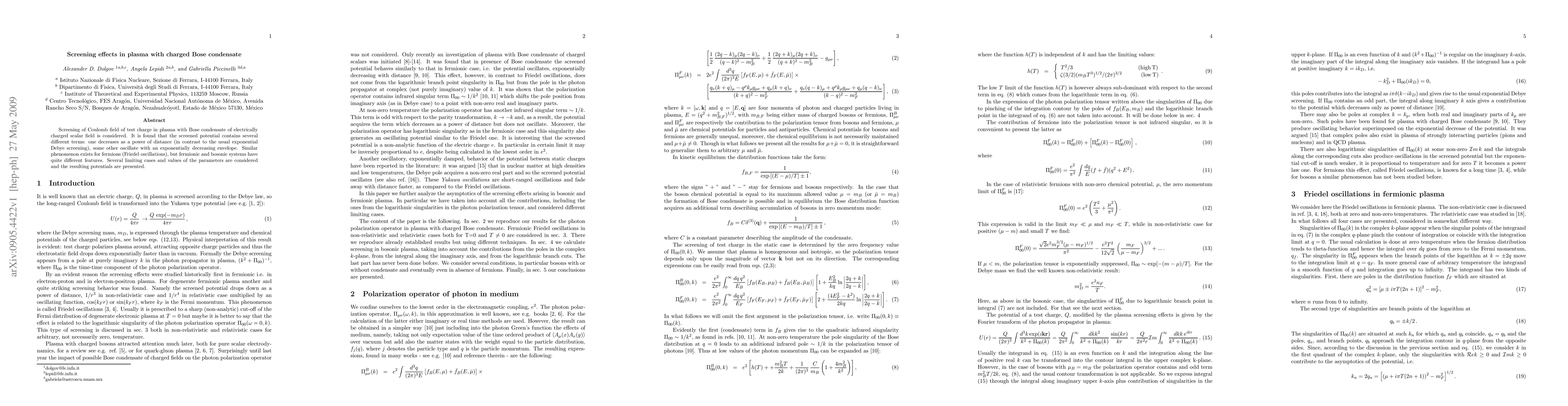 Researchers studied how charged particles in a Bose condensate affect electric fields, finding unique screening effects that don't follow traditional exponential rules.