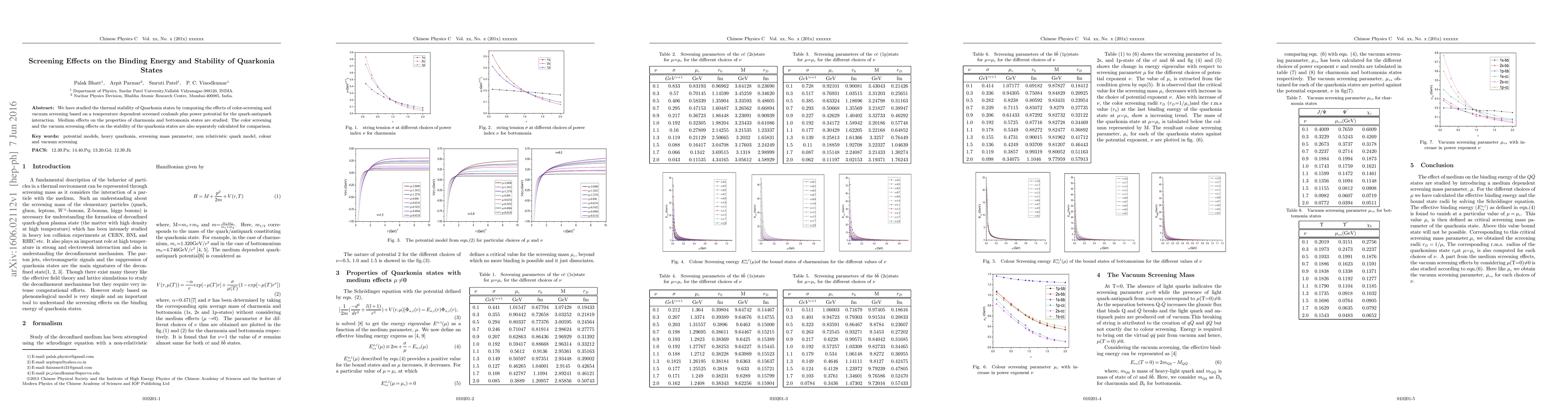 We have studied the thermal stability of Quarkonia states by computing the effects of color-screening and vacuum screening based on a temperature dependent screened coulomb plus power potential for the quark-antiquark interaction. Medium effects on the properties of charmonia and bottomonia states are studied. The color screening and the vacuum screening effects on the stability of the quarkonia states are also separately calculated for comparison.