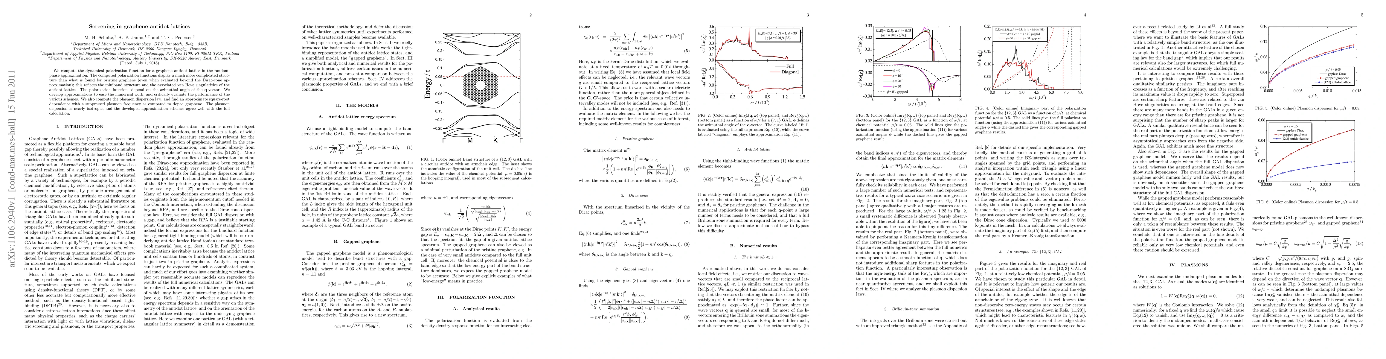 This paper investigates the dynamical polarization function in graphene antidot lattices, revealing a complex structure due to minibands and van Hove singularities. The study develops approximations to simplify calculations and finds a suppressed plasmon frequency with a nearly isotropic plasmon dispersion law compared to doped graphene.