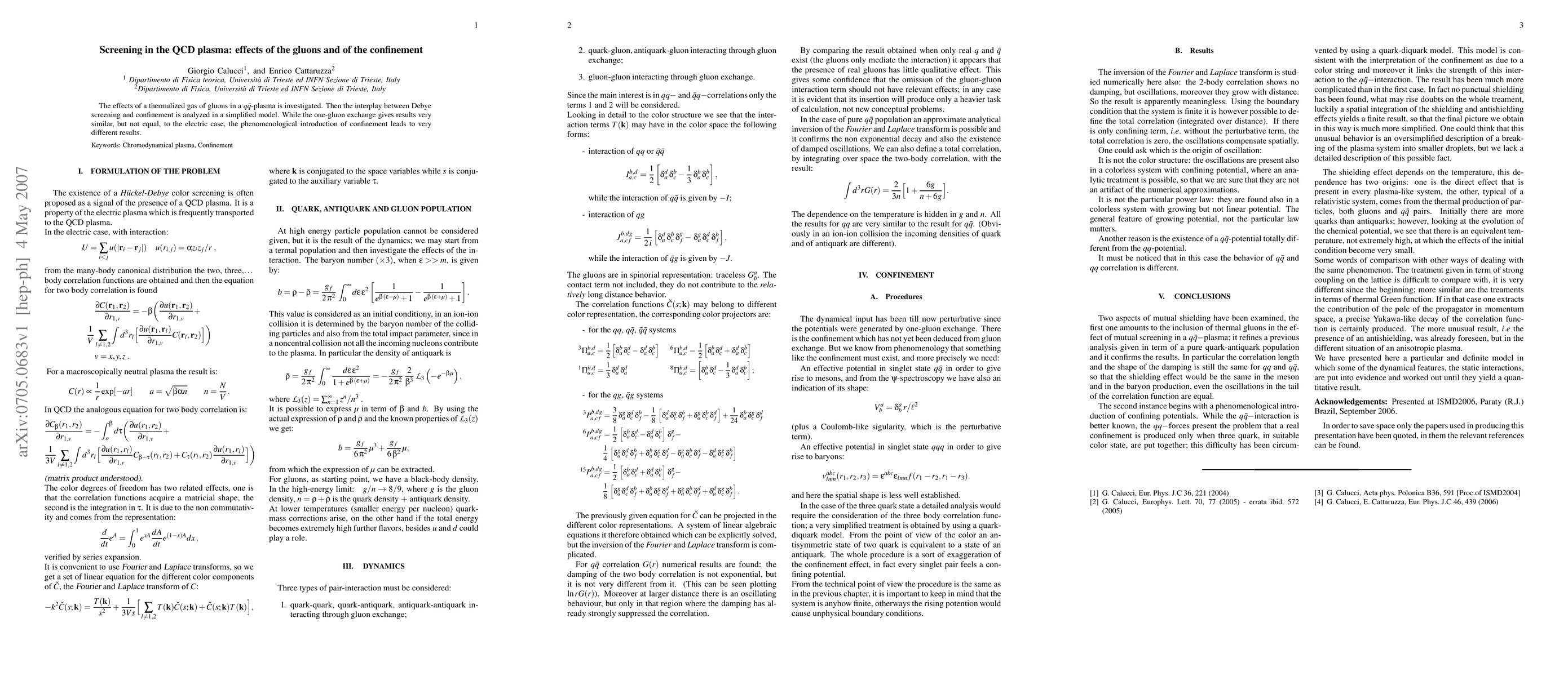 The effects of a thermalized gas of gluons in a q,q bar plasma is investigated. Then the interplay between Debye screening and confinement is analyzed in a simplified model. While the one-gluon exchange gives results very similar, but not equal, to the electric case, the phenomenological introduction of confinement leads to very different results.