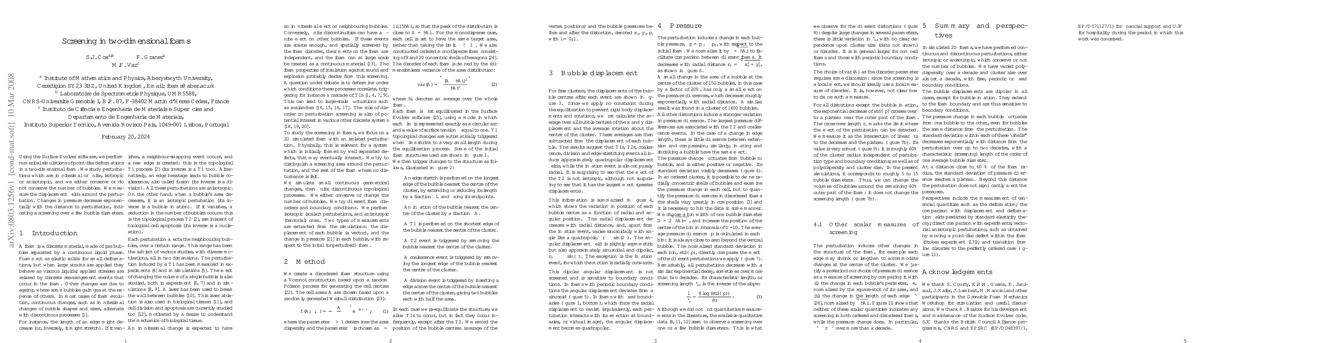 Using the Surface Evolver software, we perform numerical simulations of point-like deformations in a two-dimensional foam. We study perturbations which are infinitesimal or finite, isotropic or anisotropic, and we either conserve or do not conserve the number of bubbles. We measure the displacement fields around the perturbation. Changes in pressure decrease exponentially with the distance to perturbation, indicating a screening over a few bubble diameters.