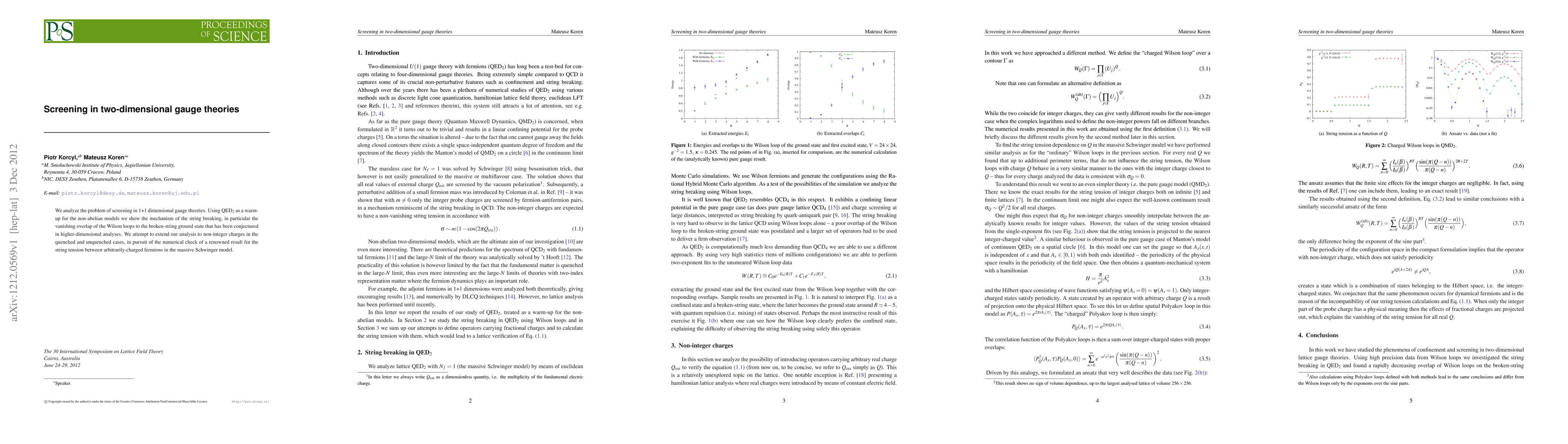 This paper investigates the screening mechanism in 1+1 dimensional gauge theories, starting with QED2 to understand string breaking and the vanishing overlap of Wilson loops. It extends the analysis to non-integer charges to verify the string tension in the massive Schwinger model for arbitrarily-charged fermions.