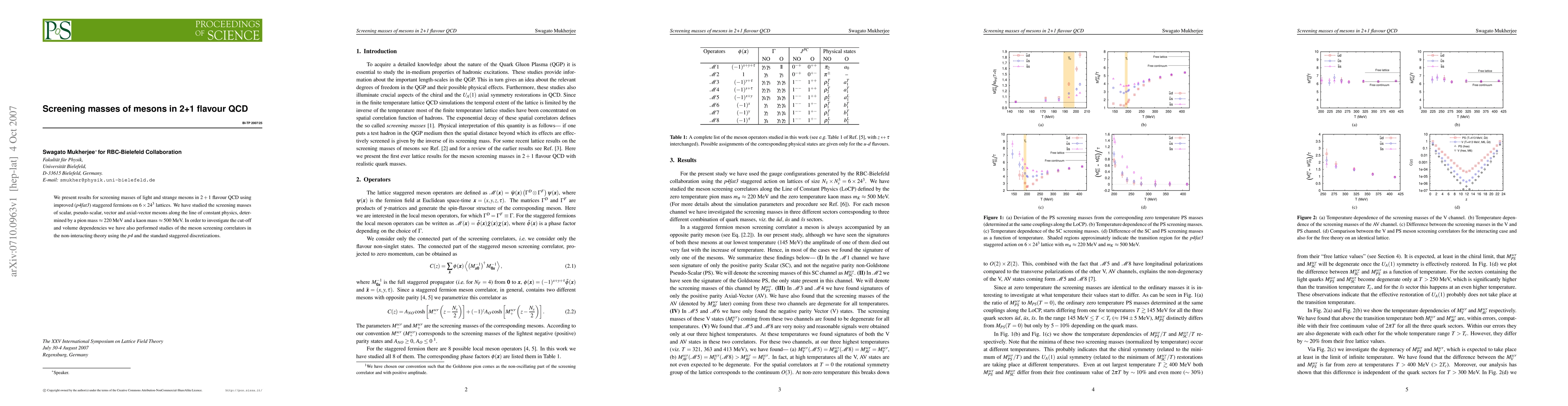 This study investigates the screening masses of light and strange mesons in 2+1 flavour QCD using improved staggered fermions on 6x24^3 lattices, focusing on scalar, pseudo-scalar, vector, and axial-vector mesons at pion and kaon masses of ~220 MeV and ~500 MeV respectively. It also examines the cut-off and volume dependencies through non-interacting theory correlators.