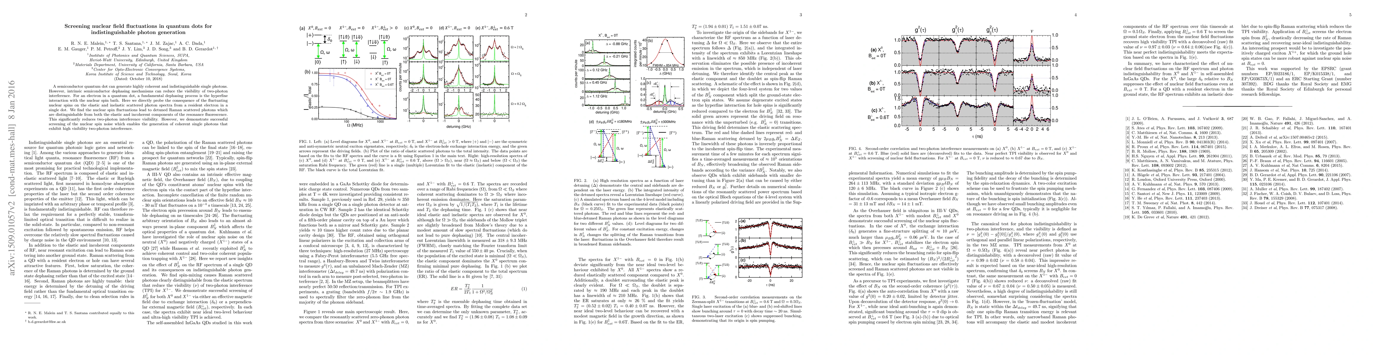A semiconductor quantum dot can generate highly coherent and indistinguishable single photons. However, intrinsic semiconductor dephasing mechanisms can reduce the visibility of two-photon interference. For an electron in a quantum dot, a fundamental dephasing process is the hyperfine interaction with the nuclear spin bath. Here we directly probe the consequence of the fluctuating nuclear spins on the elastic and inelastic scattered photon spectra from a resident electron in a single dot. We find the nuclear spin fluctuations lead to detuned Raman scattered photons which are distinguishable from both the elastic and incoherent components of the resonance fluorescence. This significantly reduces two-photon interference visibility. However, we demonstrate successful screening of the nuclear spin noise which enables the generation of coherent single photons that exhibit high visibility two-photon interference.