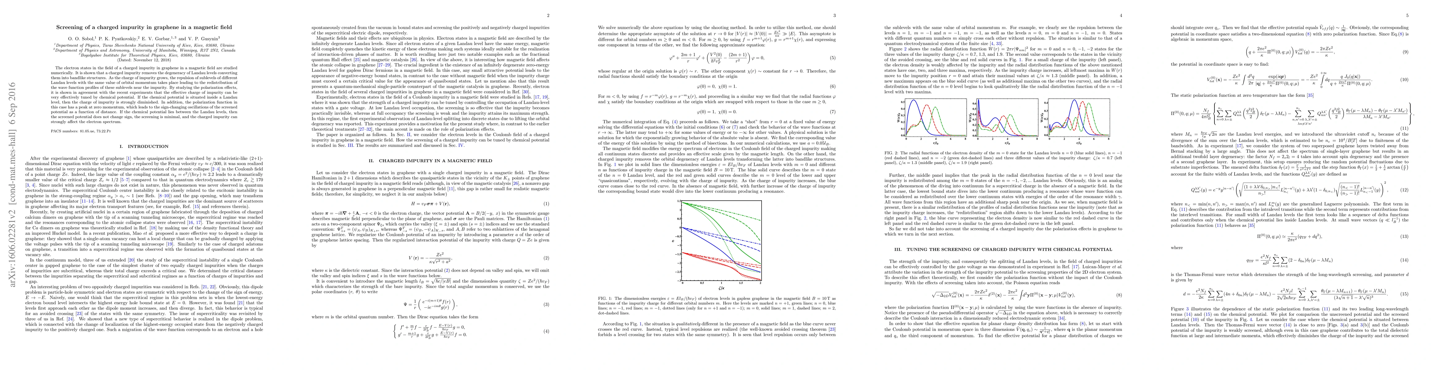 A charged impurity in graphene in a magnetic field alters Landau levels into band-like structures, allowing for effective tuning of the impurity's charge via chemical potential.