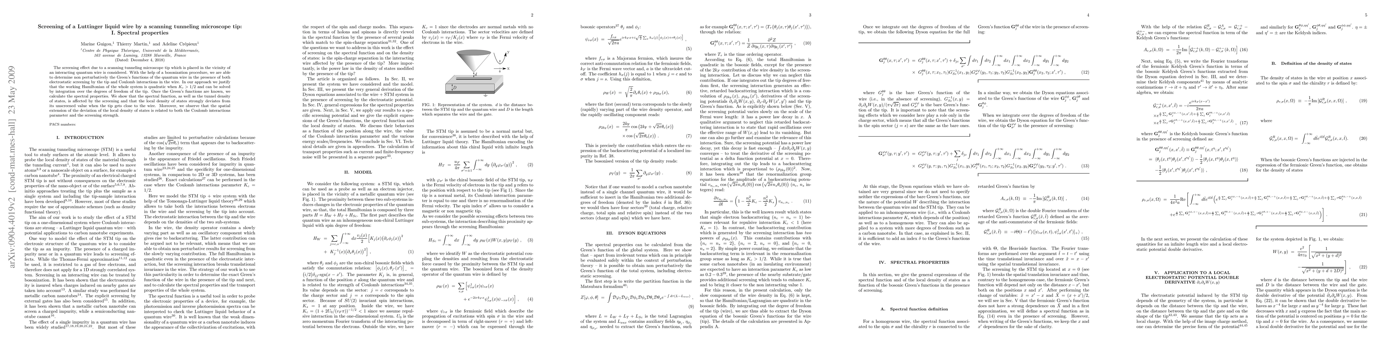 The screening effect due to a scanning tunneling microscope tip which is placed in the vicinity of an interacting quantum wire is considered. With the help of a bosonization procedure, we are able to determine non perturbatively the Green's functions of the quantum wire in the presence of both electrostatic screening by the tip and Coulomb interactions in the wire. In our approach we justify that the working Hamiltonian of the whole system is quadratic when $K_c>1/2$ and can be solved by integration over the degrees of freedom of the tip. Once the Green's functions are known, we calculate the spectral properties. We show that the spectral function, as well as the tunnel density of states, is affected by the screening and that the local density of states strongly deviates from its unscreened value when the tip gets close to the wire. Moreover, we observe that the spatial extension of the deviation of the local density of states is related to both the Coulomb interactions parameter and the screening strength.