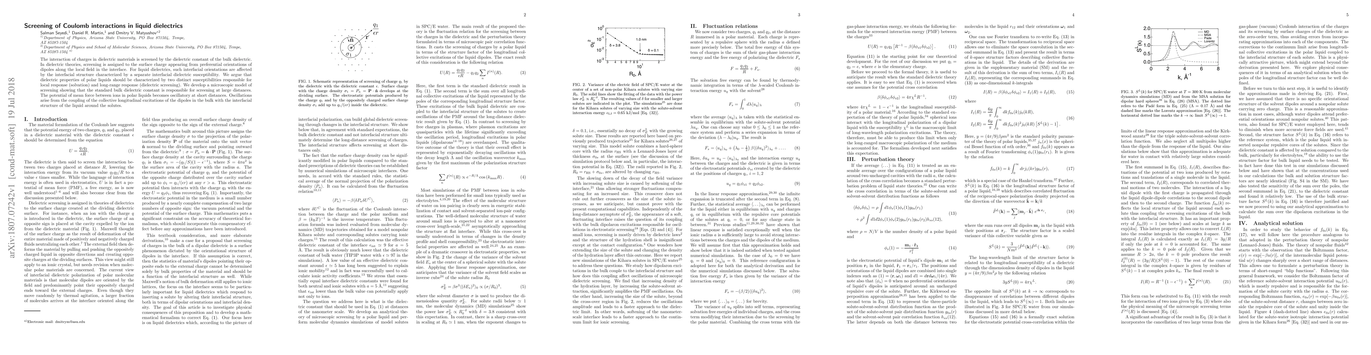 This paper proposes a dual susceptibility model for liquid dielectrics, distinguishing between local solvation and long-range dielectric screening, and demonstrates that the bulk dielectric constant screens interactions at large distances while interfacial structure induces oscillatory potentials at short distances.