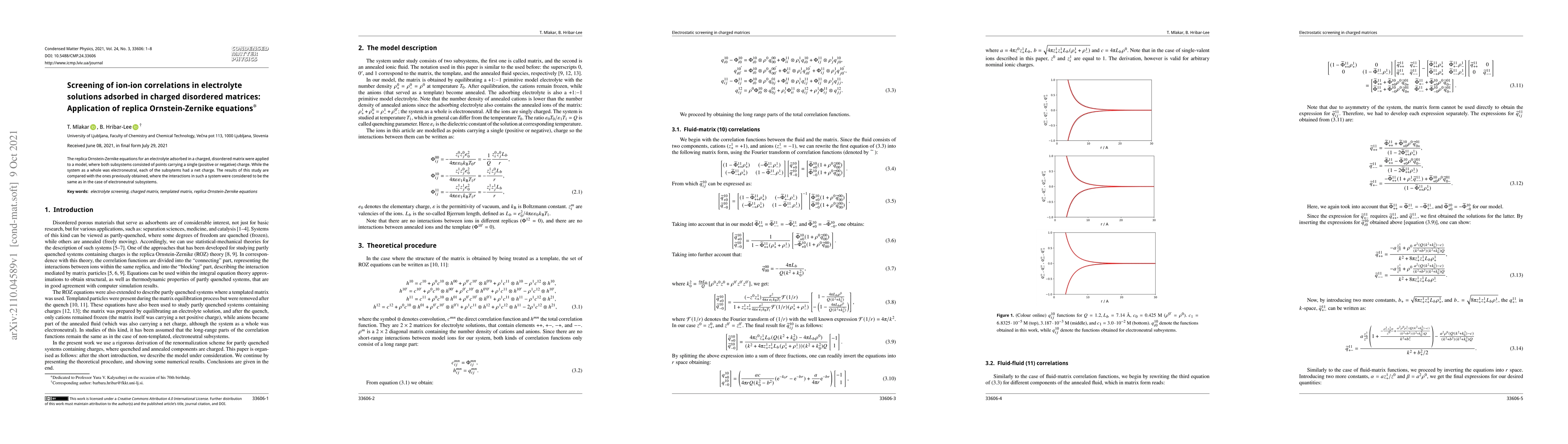 The replica Ornstein-Zernike equations for an electrolyte adsorbed in a charged, disordered matrix were applied to a model, where both subsystems consisted of points carrying a single (positive or negative) charge. While the system as a whole was electroneutral, each of the subsytems had a net charge. The results of this study are compared with the ones previously obtained, where the interactions in such a system were considered to be the same as in the case of electroneutral subsystems.