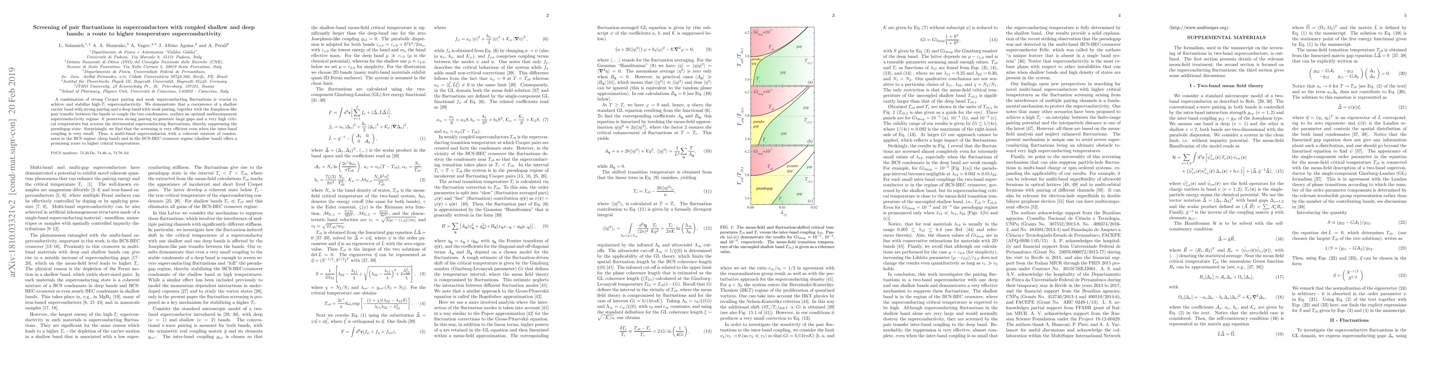 This paper explores how coupling shallow and deep bands in superconductors can enhance high-temperature superconductivity by maintaining strong pairing while efficiently screening superconducting fluctuations. The study finds that even minimal inter-band coupling can achieve effective screening, suggesting a promising pathway to higher critical temperatures through multi-band superconductivity.