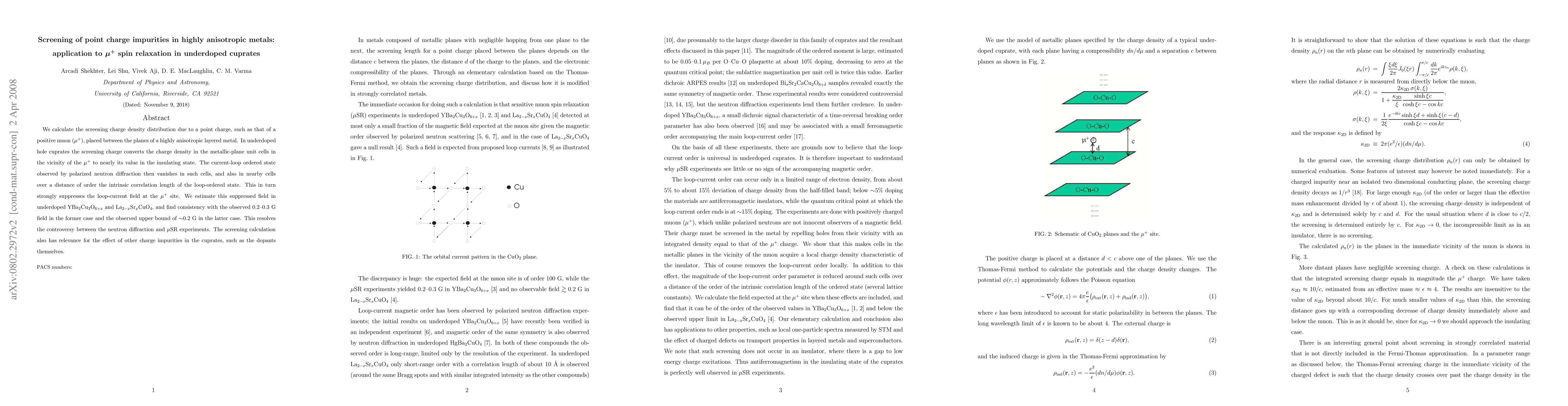 We calculate the screening charge density distribution due to a point charge, such as that of a positive muon ($\mu^+$), placed between the planes of a highly anisotropic layered metal. In underdoped hole cuprates the screening charge converts the charge density in the metallic-plane unit cells in the vicinity of the $\mu^+$ to nearly its value in the insulating state. The current-loop ordered state observed by polarized neutron diffraction then vanishes in such cells, and also in nearby cells over a distance of order the intrinsic correlation length of the loop-ordered state. This in turn strongly suppresses the loop-current field at the $\mu^+$ site. We estimate this suppressed field in underdoped YBa$_2$Cu$_3$O$_{6+x}$ and La$_{2-x}$Sr$_x$CuO$_4$, and find consistency with the observed 0.2--0.3 G field in the former case and the observed upper bound of $\sim$0.2 G in the latter case. This resolves the controversy between the neutron diffraction and $\mu$SR experiments. The screening calculation also has relevance for the effect of other charge impurities in the cuprates, such as the dopants themselves.