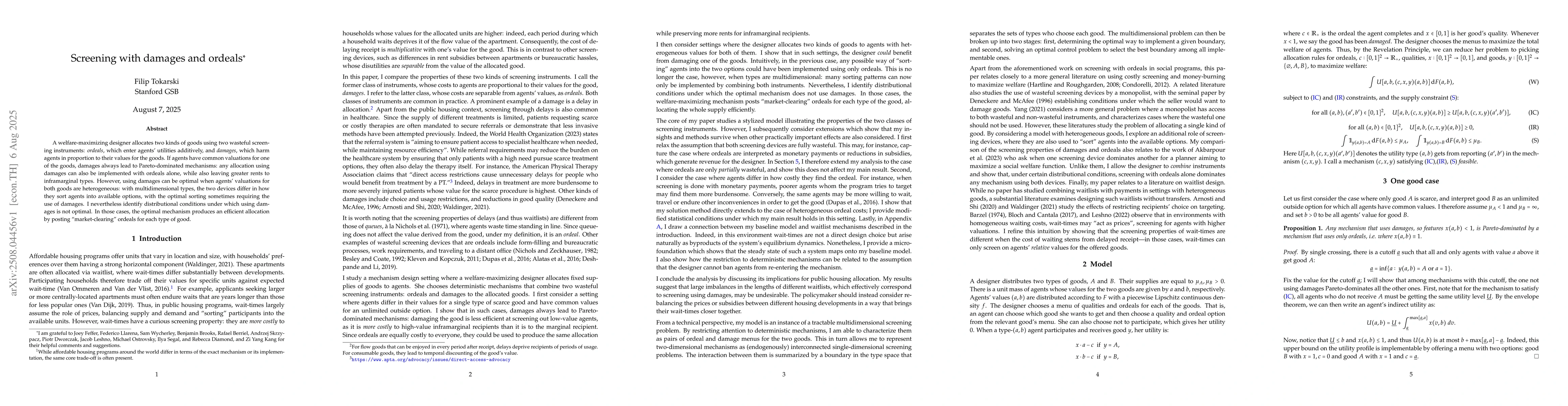 A welfare-maximizing designer allocates two kinds of goods using two wasteful screening instruments: ordeals, which enter agents' utilities additively, and damages, which harm agents in proportion to their values for the goods. If agents have common valuations for one of the goods, damages always lead to Pareto-dominated mechanisms: any allocation using damages can also be implemented with ordeals alone, while also leaving greater rents to inframarginal types. However, using damages can be optimal when agents' valuations for both goods are heterogeneous: with multidimensional types, the two devices differ in how they sort agents into available options, with the optimal sorting sometimes requiring the use of damages. I nevertheless identify distributional conditions under which using damages is not optimal. In those cases, the optimal mechanism produces an efficient allocation by posting "market-clearing" ordeals for each type of good.