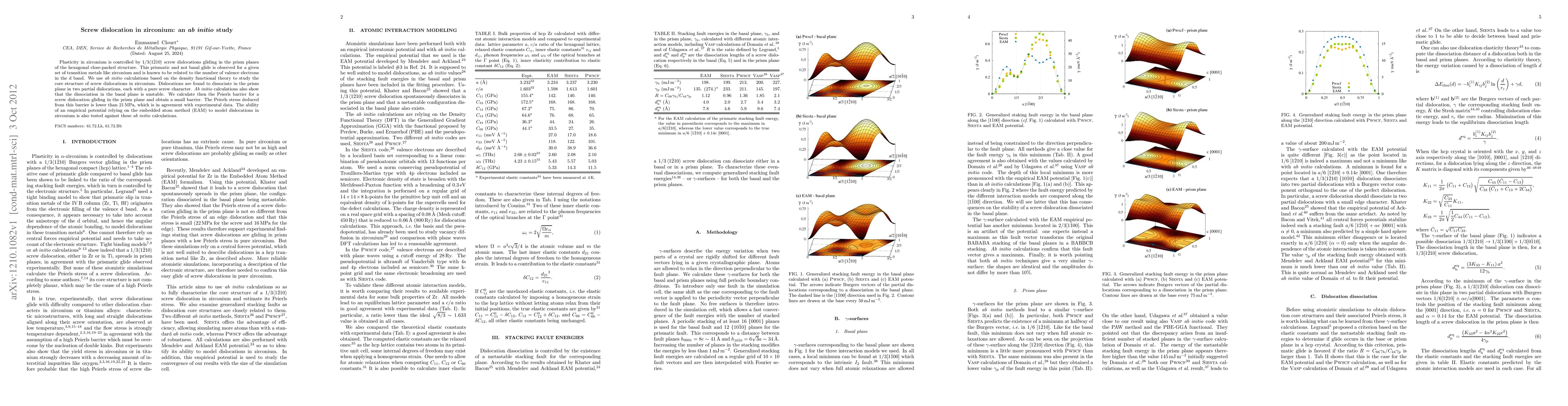 This study uses ab initio calculations to investigate screw dislocations in zirconium, finding they dissociate in the prism plane into partial screw dislocations and exhibit a low Peierls barrier, consistent with experimental data, while empirical EAM potentials are validated against these findings.