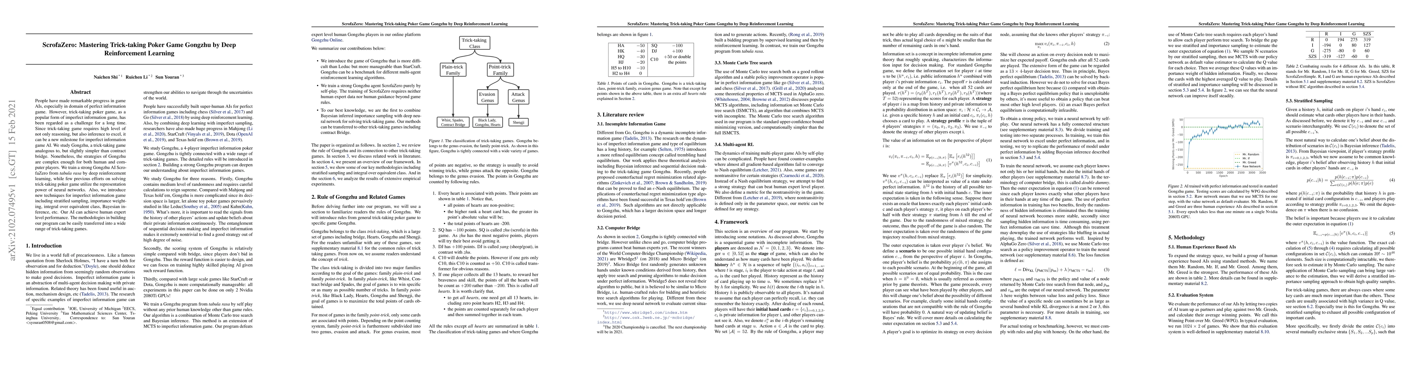 ScrofaZero employs deep reinforcement learning to master the trick-taking poker game Gongzhu, achieving human expert level performance through innovative techniques for imperfect information games. The methodologies developed can be applied to other complex trick-taking games.