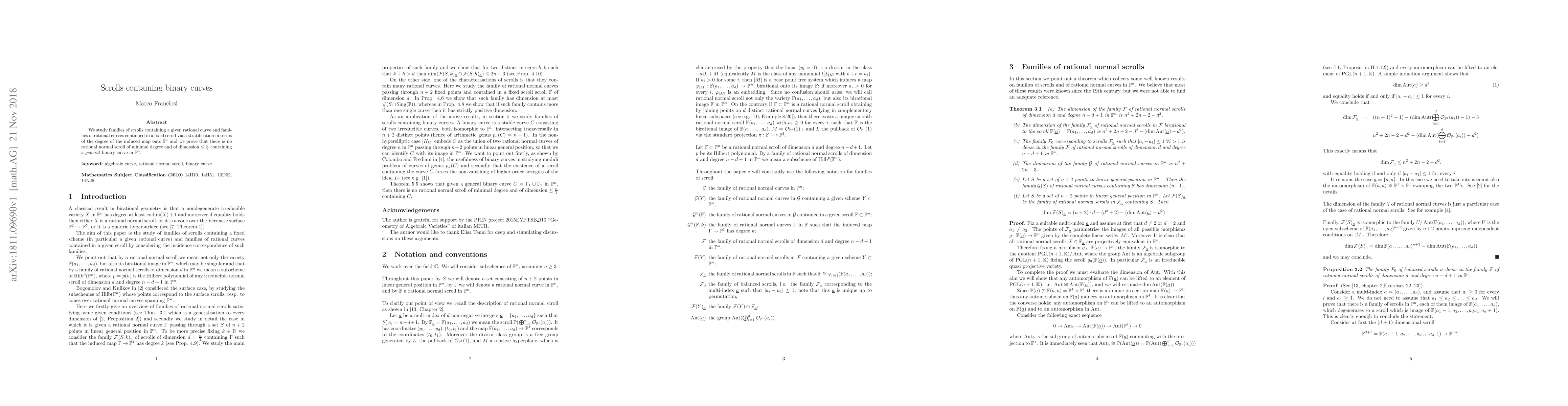 This paper investigates scrolls containing rational curves and rational curves within fixed scrolls, classifying them based on the degree of the induced map. It concludes that there is no rational normal scroll of minimal degree and dimension ≤ n/2 containing a general binary curve in P^n.