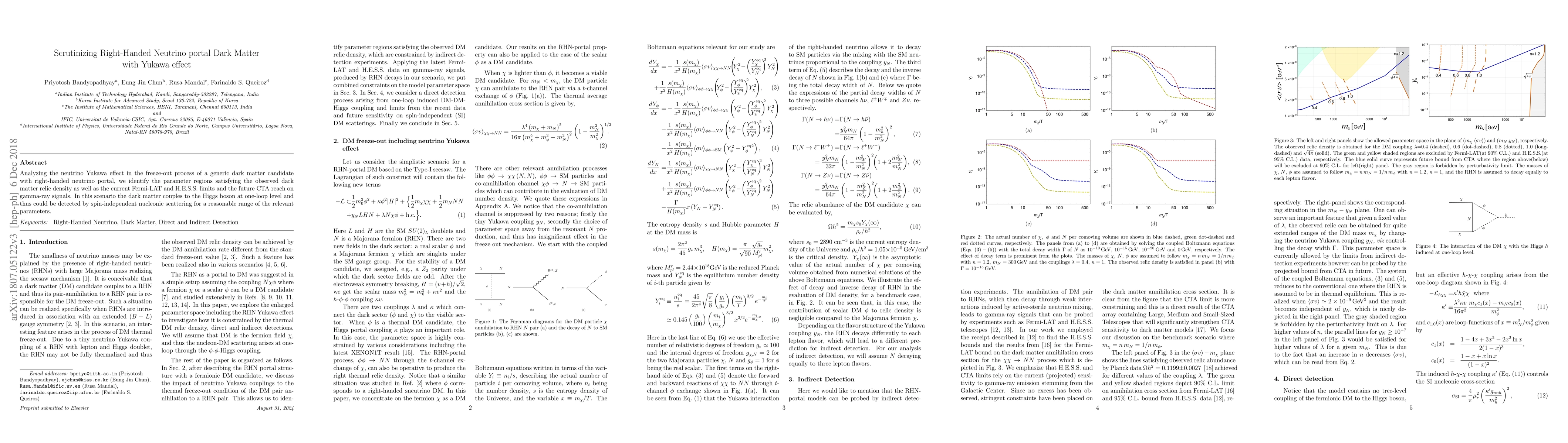 Analyzing the neutrino Yukawa effect in the freeze-out process of a generic dark matter candidate with right-handed neutrino portal, we identify the parameter regions satisfying the observed dark matter relic density as well as the current Fermi-LAT and H.E.S.S. limits and the future CTA reach on gamma-ray signals. In this scenario the dark matter couples to the Higgs boson at one-loop level and thus could be detected by spin-independent nucleonic scattering for a reasonable range of the relevant parameters.