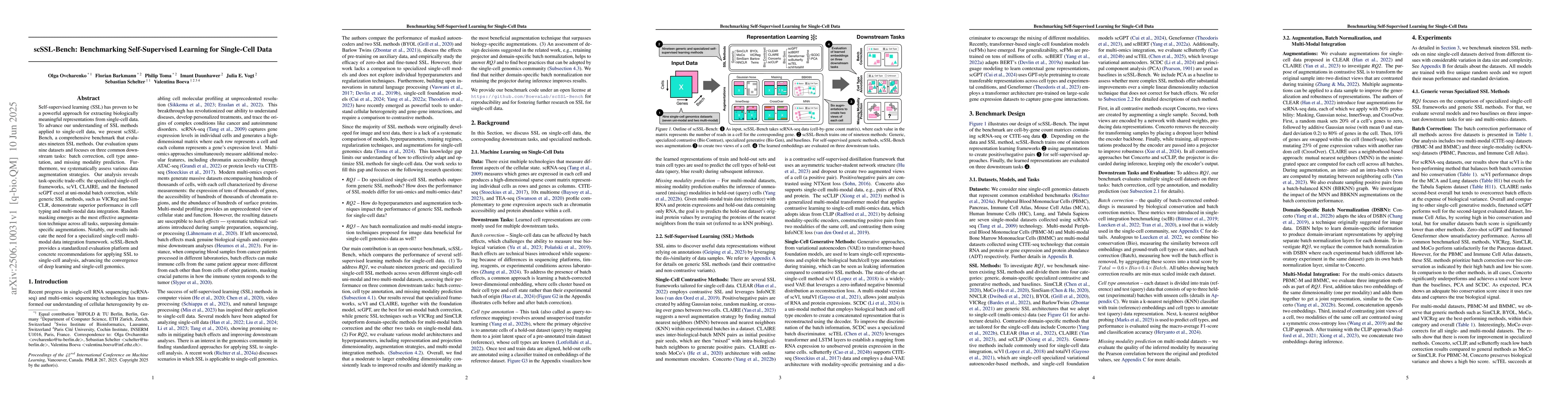 A new benchmark evaluates 19 self-supervised learning methods for single-cell data, revealing task-specific trade-offs and the need for specialized frameworks in multi-modal data integration. The findings provide recommendations for applying SSL to single-cell analysis and advancing deep learning and genomics.