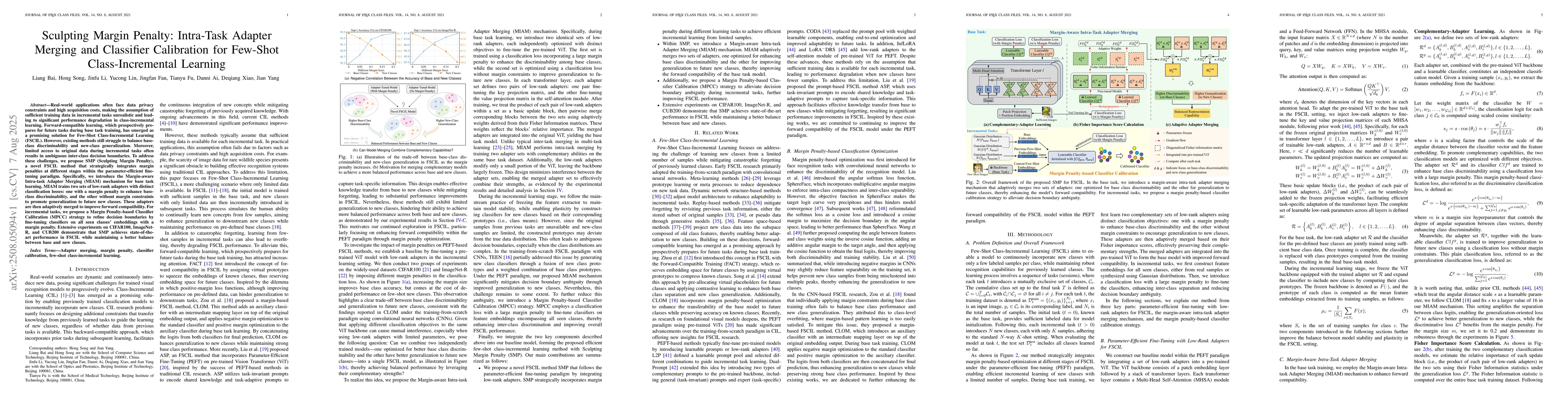 Real-world applications often face data privacy constraints and high acquisition costs, making the assumption of sufficient training data in incremental tasks unrealistic and leading to significant performance degradation in class-incremental learning. Forward-compatible learning, which prospectively prepares for future tasks during base task training, has emerged as a promising solution for Few-Shot Class-Incremental Learning (FSCIL). However, existing methods still struggle to balance base-class discriminability and new-class generalization. Moreover, limited access to original data during incremental tasks often results in ambiguous inter-class decision boundaries. To address these challenges, we propose SMP (Sculpting Margin Penalty), a novel FSCIL method that strategically integrates margin penalties at different stages within the parameter-efficient fine-tuning paradigm. Specifically, we introduce the Margin-aware Intra-task Adapter Merging (MIAM) mechanism for base task learning. MIAM trains two sets of low-rank adapters with distinct classification losses: one with a margin penalty to enhance base-class discriminability, and the other without margin constraints to promote generalization to future new classes. These adapters are then adaptively merged to improve forward compatibility. For incremental tasks, we propose a Margin Penalty-based Classifier Calibration (MPCC) strategy to refine decision boundaries by fine-tuning classifiers on all seen classes' embeddings with a margin penalty. Extensive experiments on CIFAR100, ImageNet-R, and CUB200 demonstrate that SMP achieves state-of-the-art performance in FSCIL while maintaining a better balance between base and new classes.