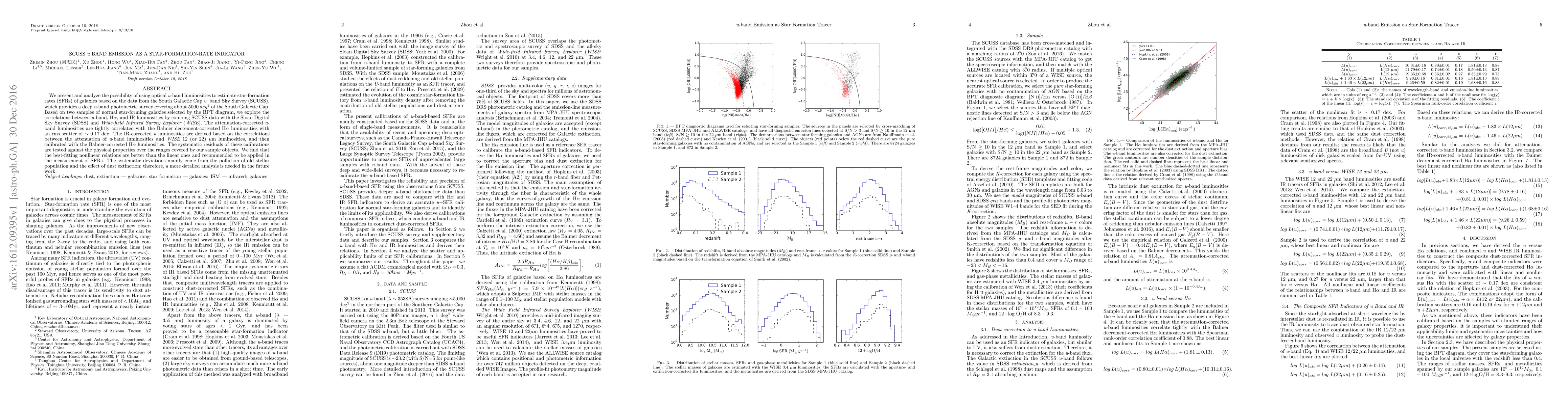 This paper explores the use of optical u-band luminosities from the SCUSS survey to estimate star-formation rates (SFRs) in galaxies. It finds a strong correlation between u-band and Hα luminosities, suggesting u-band can be a reliable SFR indicator, though systematic deviations due to old stars and dust extinction require further analysis.