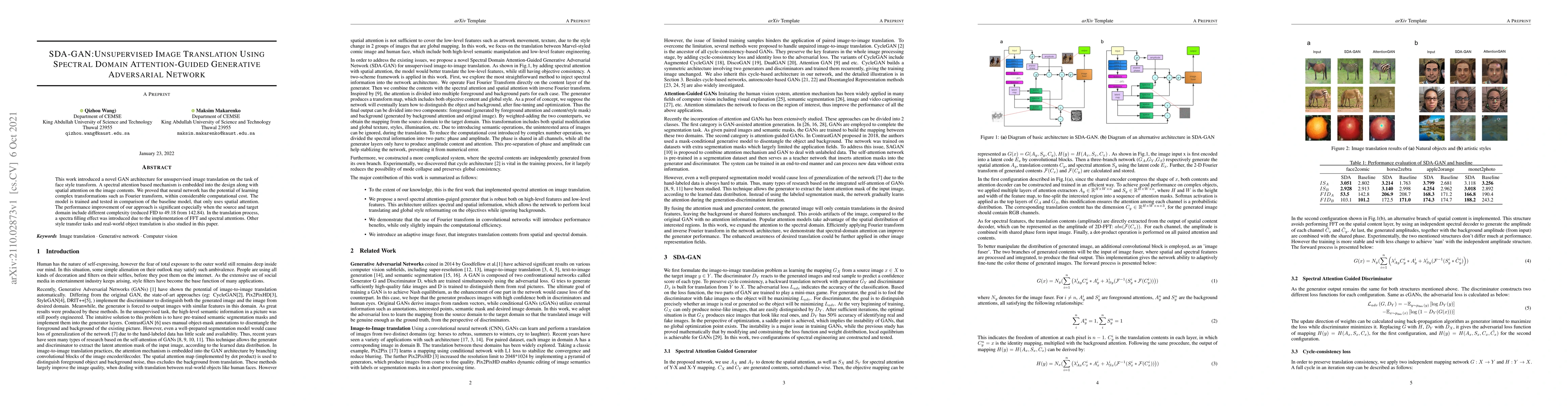 This work introduced a novel GAN architecture for unsupervised image translation on the task of face style transform. A spectral attention-based mechanism is embedded into the design along with spatial attention on the image contents. We proved that neural network has the potential of learning complex transformations such as Fourier transform, within considerable computational cost. The model is trained and tested in comparison to the baseline model, which only uses spatial attention. The performance improvement of our approach is significant especially when the source and target domain include different complexity (reduced FID to 49.18 from 142.84). In the translation process, a spectra filling effect was introduced due to the implementation of FFT and spectral attention. Another style transfer task and real-world object translation are also studied in this paper.