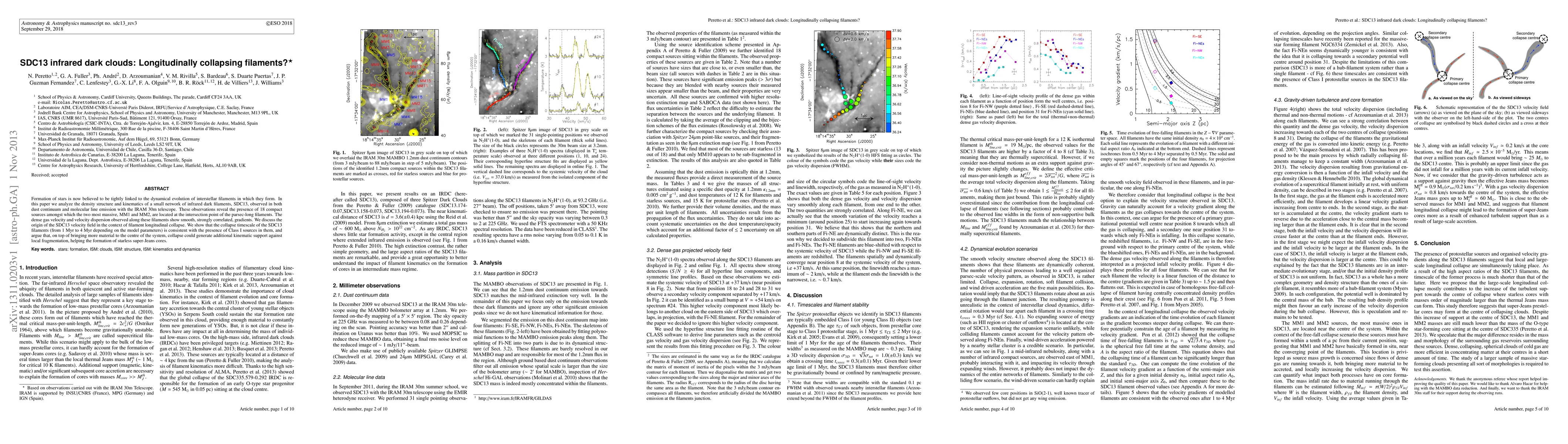 This paper investigates the density and kinematics of infrared dark filaments in SDC13, revealing smooth, correlated gradients indicative of longitudinal collapse. The findings suggest that filament collapse supports star formation by concentrating material and potentially preventing local fragmentation.