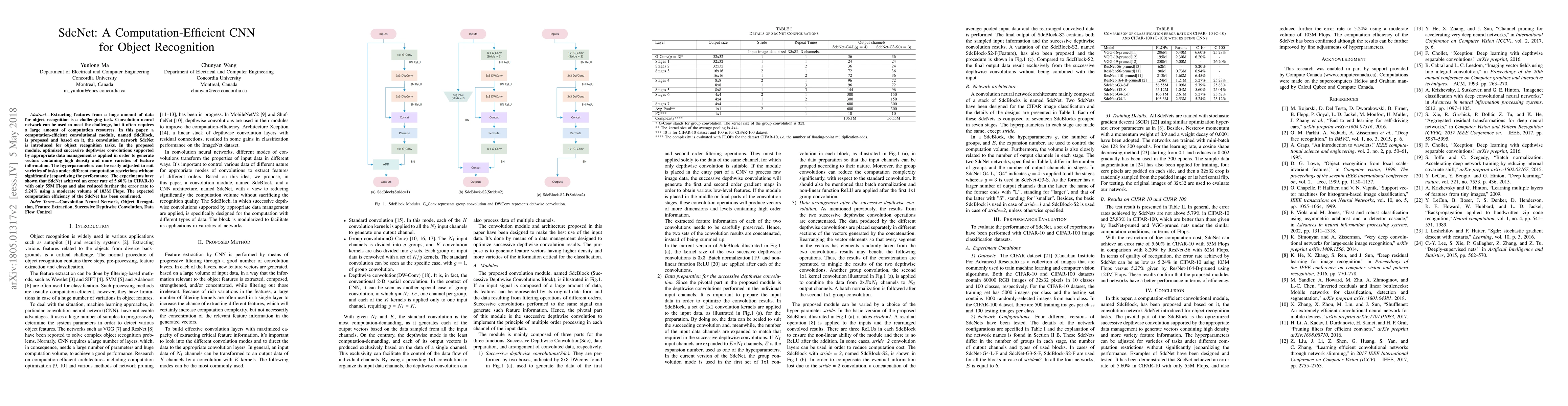 Extracting features from a huge amount of data for object recognition is a challenging task. Convolution neural network can be used to meet the challenge, but it often requires a large number of computation resources. In this paper, a computation-efficient convolutional module, named SdcBlock, is proposed and based on it, the convolution network SdcNet is introduced for object recognition tasks. In the proposed module, optimized successive depthwise convolutions supported by appropriate data management is applied in order to generate vectors containing high density and more varieties of feature information. The hyperparameters can be easily adjusted to suit varieties of tasks under different computation restrictions without significantly jeopardizing the performance. The experiments have shown that SdcNet achieved an error rate of 5.60% in CIFAR-10 with only 55M Flops and also reduced further the error rate to 5.24% using a moderate volume of 103M Flops. The expected computation efficiency of the SdcNet has been confirmed.