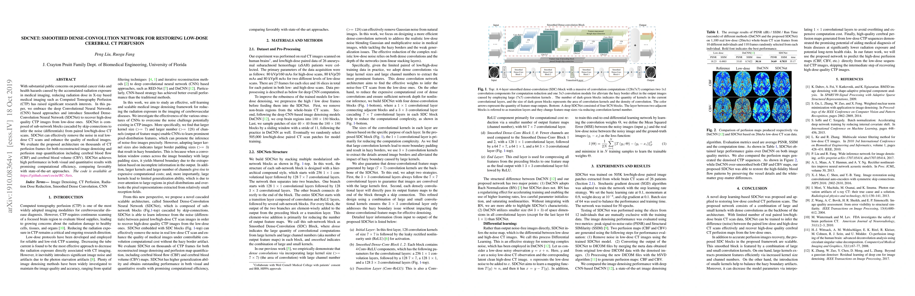 This paper introduces SDCNet, a Smoothed Dense-Convolution Neural Network for restoring high-quality Computed Tomography Perfusion (CTP) images from low-dose scans, aiming to reduce radiation exposure. The proposed network effectively removes noise and enhances image quality, achieving superior performance in both visual and quantitative metrics compared to state-of-the-art methods.