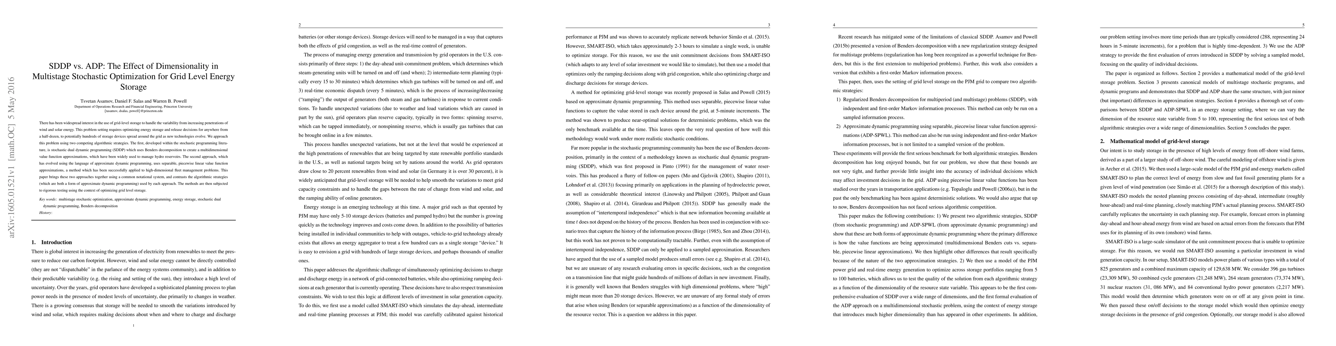 There has been widespread interest in the use of grid-level storage to handle the variability from increasing penetrations of wind and solar energy. This problem setting requires optimizing energy storage and release decisions for anywhere from a half-dozen, to potentially hundreds of storage devices spread around the grid as new technologies evolve. We approach this problem using two competing algorithmic strategies. The first, developed within the stochastic programming literature, is stochastic dual dynamic programming (SDDP) which uses Benders decomposition to create a multidimensional value function approximations, which have been widely used to manage hydro reservoirs. The second approach, which has evolved using the language of approximate dynamic programming, uses separable, piecewise linear value function approximations, a method which has been successfully applied to high-dimensional fleet management problems. This paper brings these two approaches together using a common notational system, and contrasts the algorithmic strategies (which are both a form of approximate dynamic programming) used by each approach. The methods are then subjected to rigorous testing using the context of optimizing grid level storage.