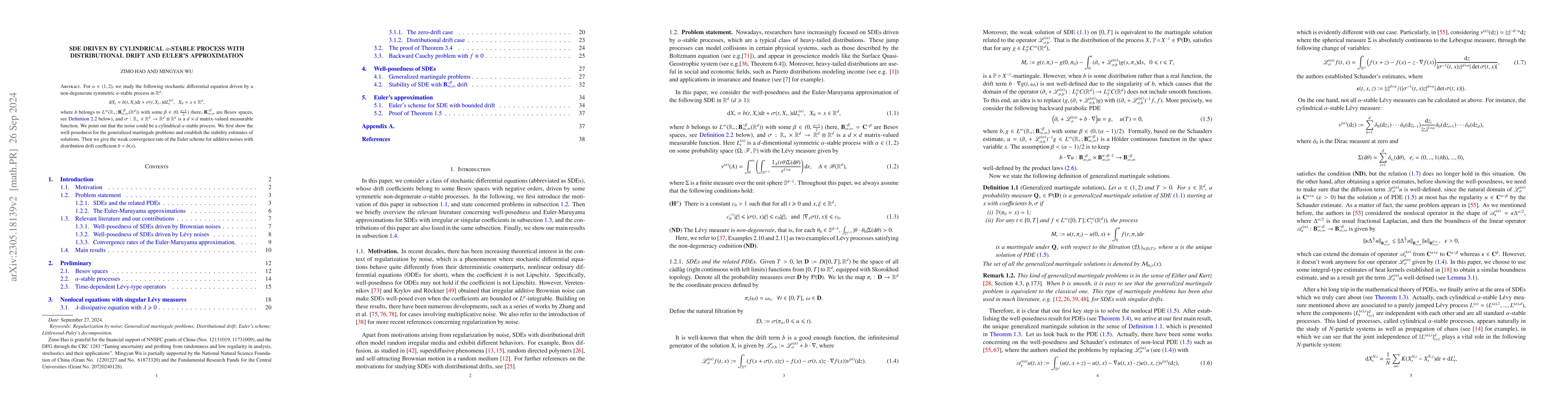 This paper investigates a stochastic differential equation driven by a cylindrical $\alpha$-stable process with a distributional drift, where $\alpha \in (1,2)$. It establishes generalized martingale problems and stability estimates, and applies these results to derive the weak convergence rate of the Euler scheme for additive noise with drift.