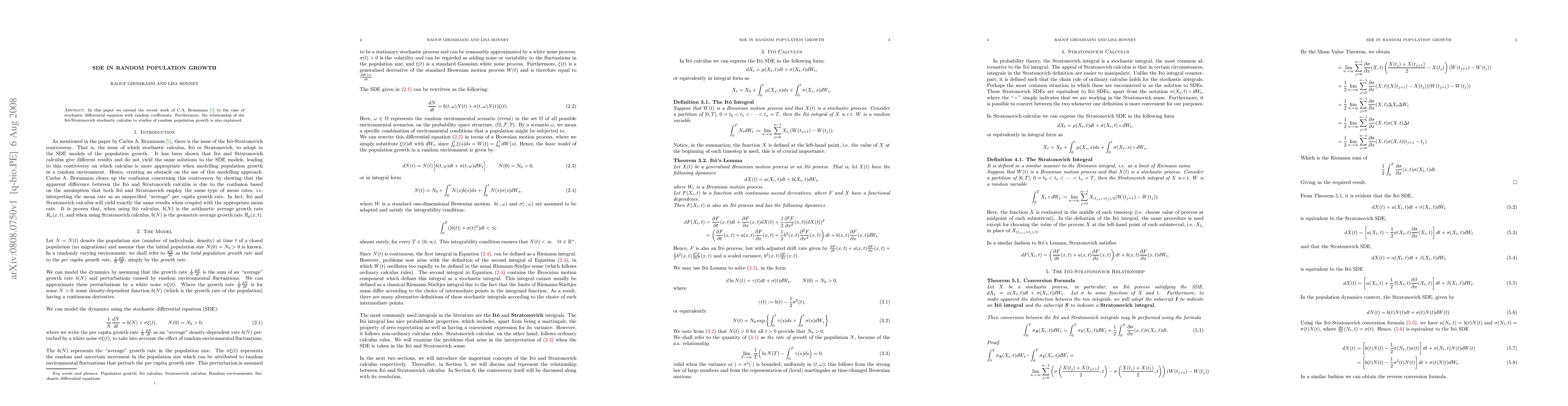 In this paper we extend the recent work of C.A. Braumann \cite{B2007} to the case of stochastic differential equation with random coefficients. Furthermore, the relationship of the It\^o-Stratonovich stochastic calculus to studies of random population growth is also explained.