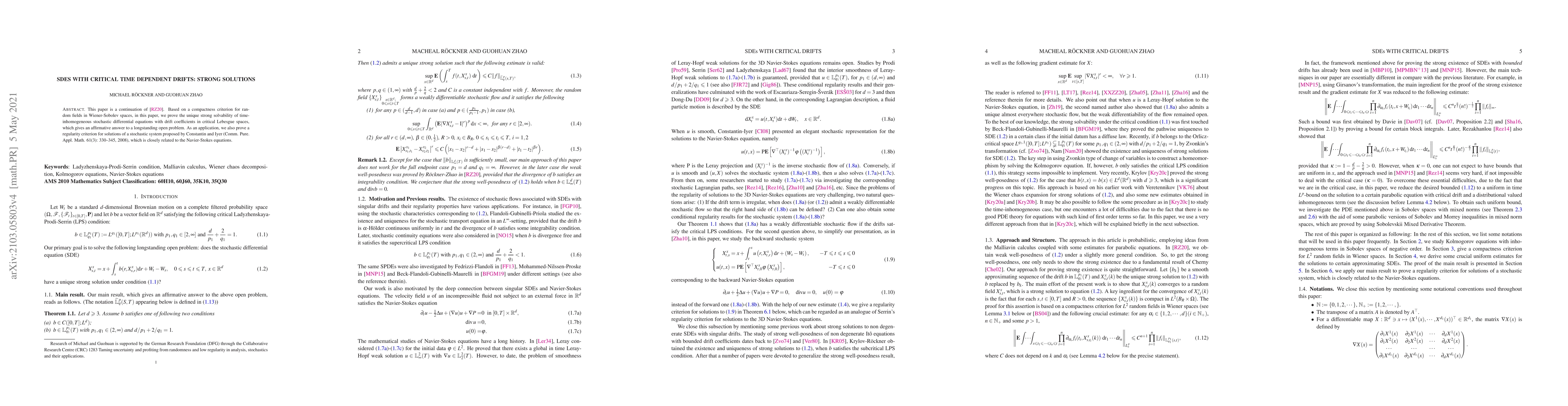 Based on a compactness criterion for random fields in Wiener-Sobolev spaces, in this paper, we prove the unique strong solvability of time-inhomogeneous stochastic differential equations with drift coefficients in critical Lebesgue spaces, which gives an affirmative answer to a longstanding open problem. As an application, we also prove a regularity criterion for solutions of a stochastic system proposed by Constantin and Iyer (Comm. Pure. Appl. Math. 61(3): 330-345, 2008), which is closely related to the Navier-Stokes equations.