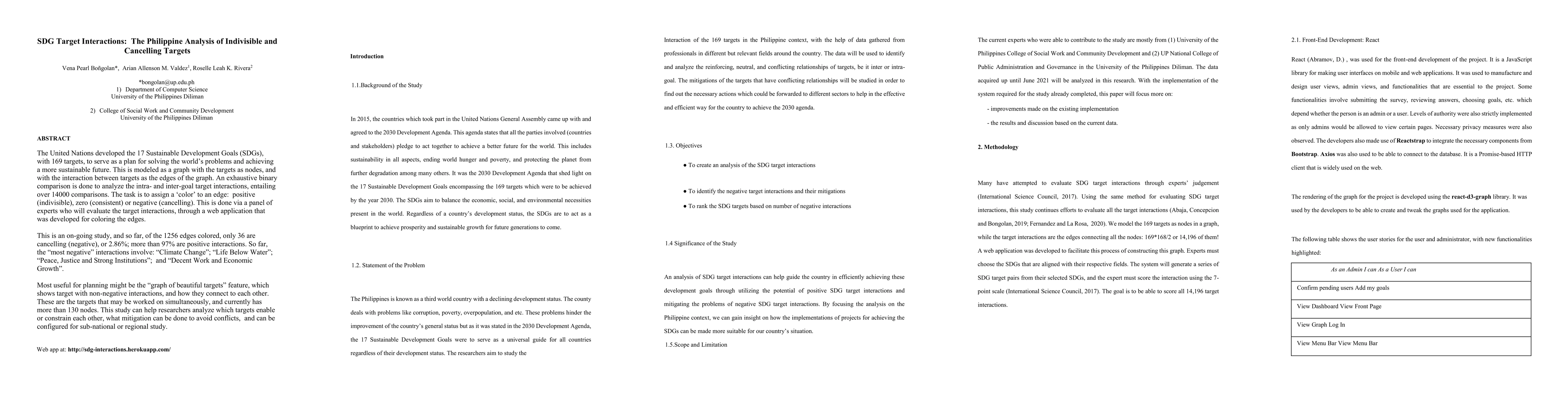 The Philippine analysis of Sustainable Development Goals (SDG) targets found that 97% have positive interactions and only 2.86% are cancelling, with the most negative interactions involving 'Climate Change' and 'Life Below Water'.