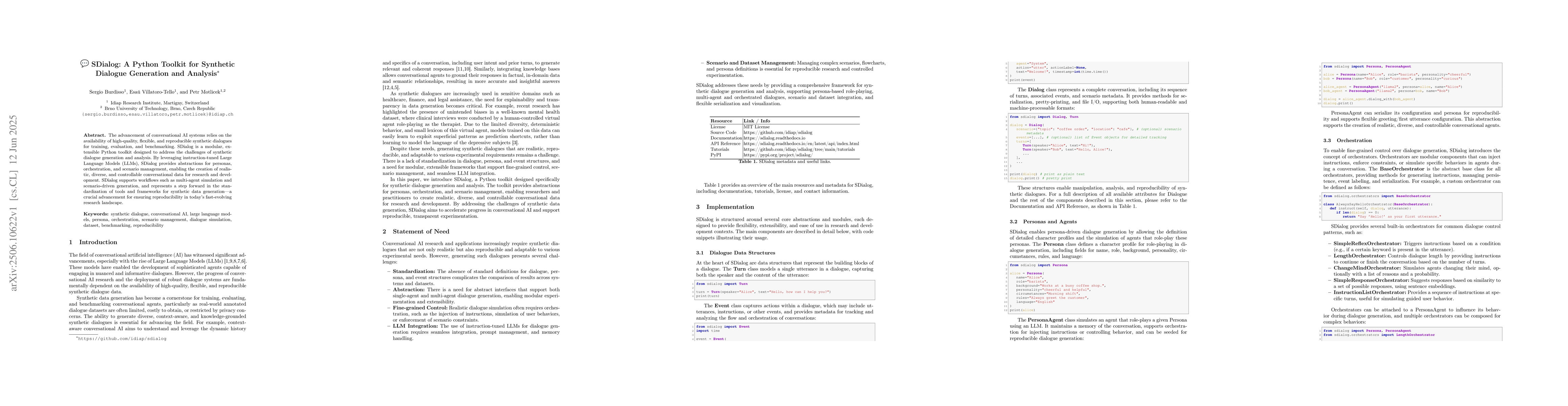 SDialog is a Python toolkit that generates and analyzes synthetic dialogues using Large Language Models, providing realistic and controllable conversational data for research and development.