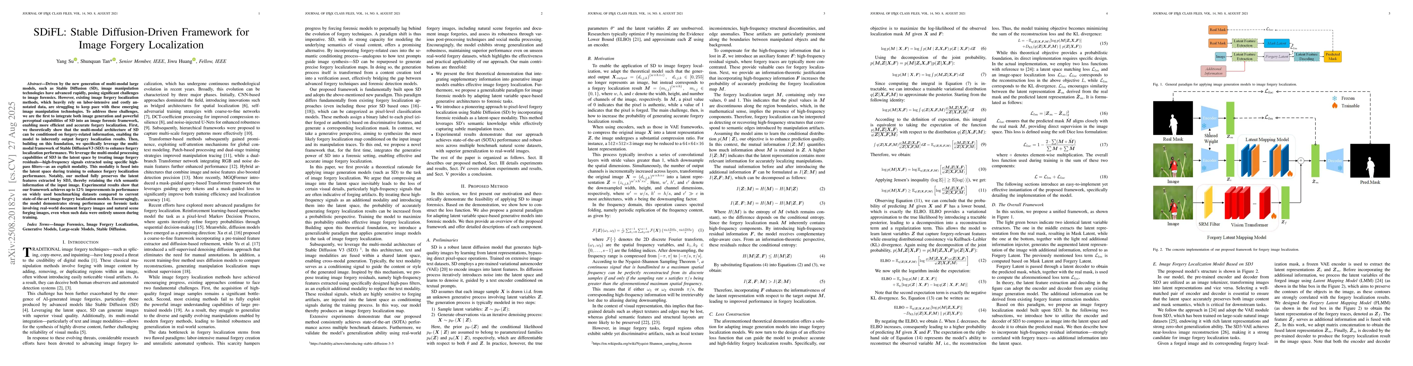 Driven by the new generation of multi-modal large models, such as Stable Diffusion (SD), image manipulation technologies have advanced rapidly, posing significant challenges to image forensics. However, existing image forgery localization methods, which heavily rely on labor-intensive and costly annotated data, are struggling to keep pace with these emerging image manipulation technologies. To address these challenges, we are the first to integrate both image generation and powerful perceptual capabilities of SD into an image forensic framework, enabling more efficient and accurate forgery localization. First, we theoretically show that the multi-modal architecture of SD can be conditioned on forgery-related information, enabling the model to inherently output forgery localization results. Then, building on this foundation, we specifically leverage the multimodal framework of Stable DiffusionV3 (SD3) to enhance forgery localization performance.We leverage the multi-modal processing capabilities of SD3 in the latent space by treating image forgery residuals -- high-frequency signals extracted using specific highpass filters -- as an explicit modality. This modality is fused into the latent space during training to enhance forgery localization performance. Notably, our method fully preserves the latent features extracted by SD3, thereby retaining the rich semantic information of the input image. Experimental results show that our framework achieves up to 12% improvements in performance on widely used benchmarking datasets compared to current state-of-the-art image forgery localization models. Encouragingly, the model demonstrates strong performance on forensic tasks involving real-world document forgery images and natural scene forging images, even when such data were entirely unseen during training.